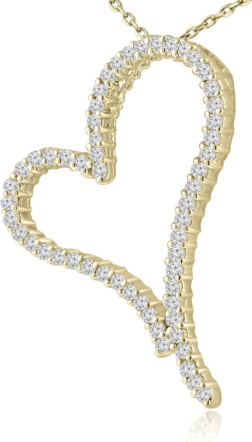 Madina Jewelry 1.30 ct Round Cut Diamond Heart Shape Pendant Necklace (G Color SI-1 Clarity) in 14 kt Yellow Gold