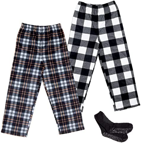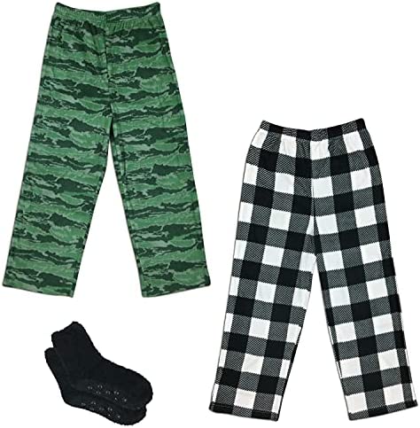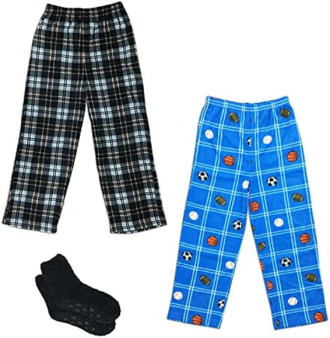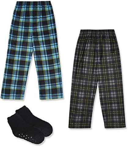 Give the Gift that Keeps on Giving: These 2 pack boys' flannel pants and slipper socks make for a perfect present to give any boy, especially one in your life who loves wearing pajamas!