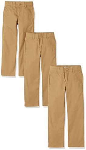 Amazon Essentials Boys and Toddlers' Uniform Straight-Fit Flat-Front Chino Khaki Pants, Multipacks