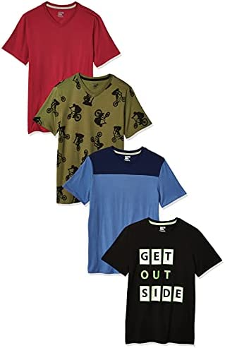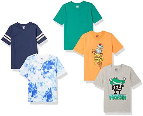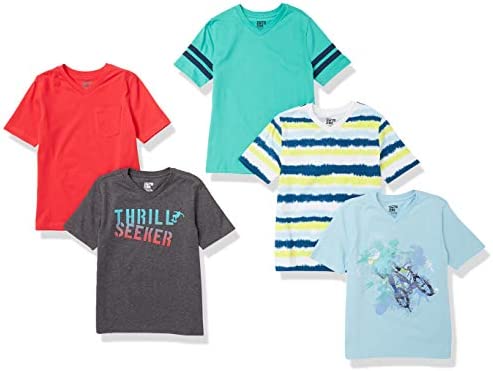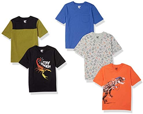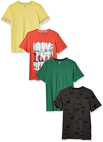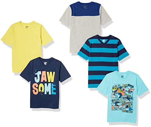 Amazon Essentials Boys and Toddlers' Short-Sleeve V-Neck T-Shirt Tops (Previously Spotted Zebra), Multipacks
