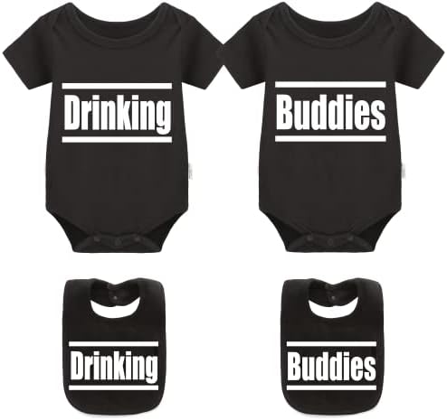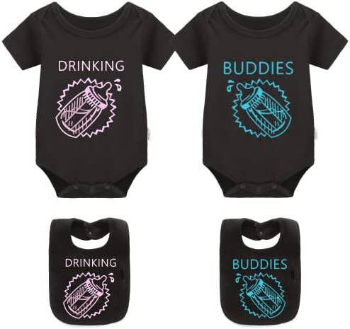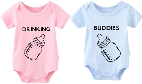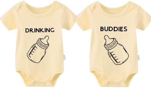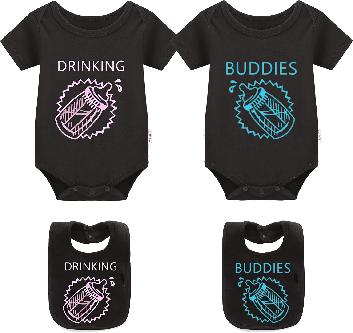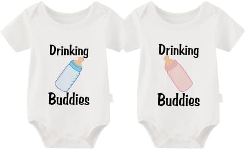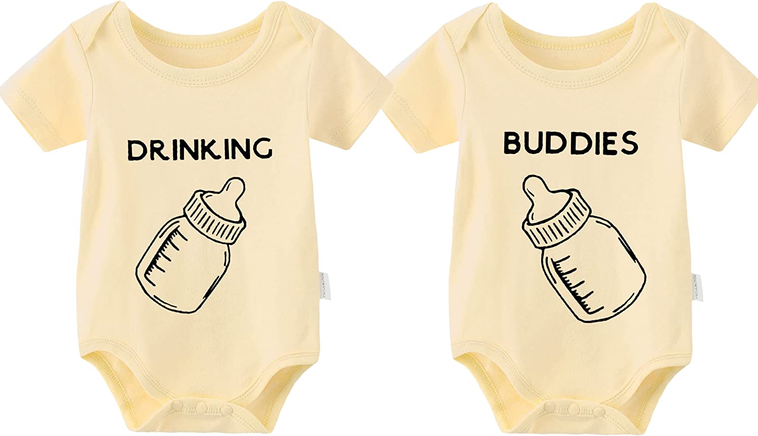 YSCULBUTOL Baby Twins Bodysuit Drinking Buddies Newborn Baby Romper Twins Boy Girl Matching Outfits Triplets Set