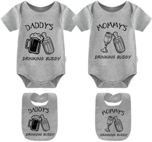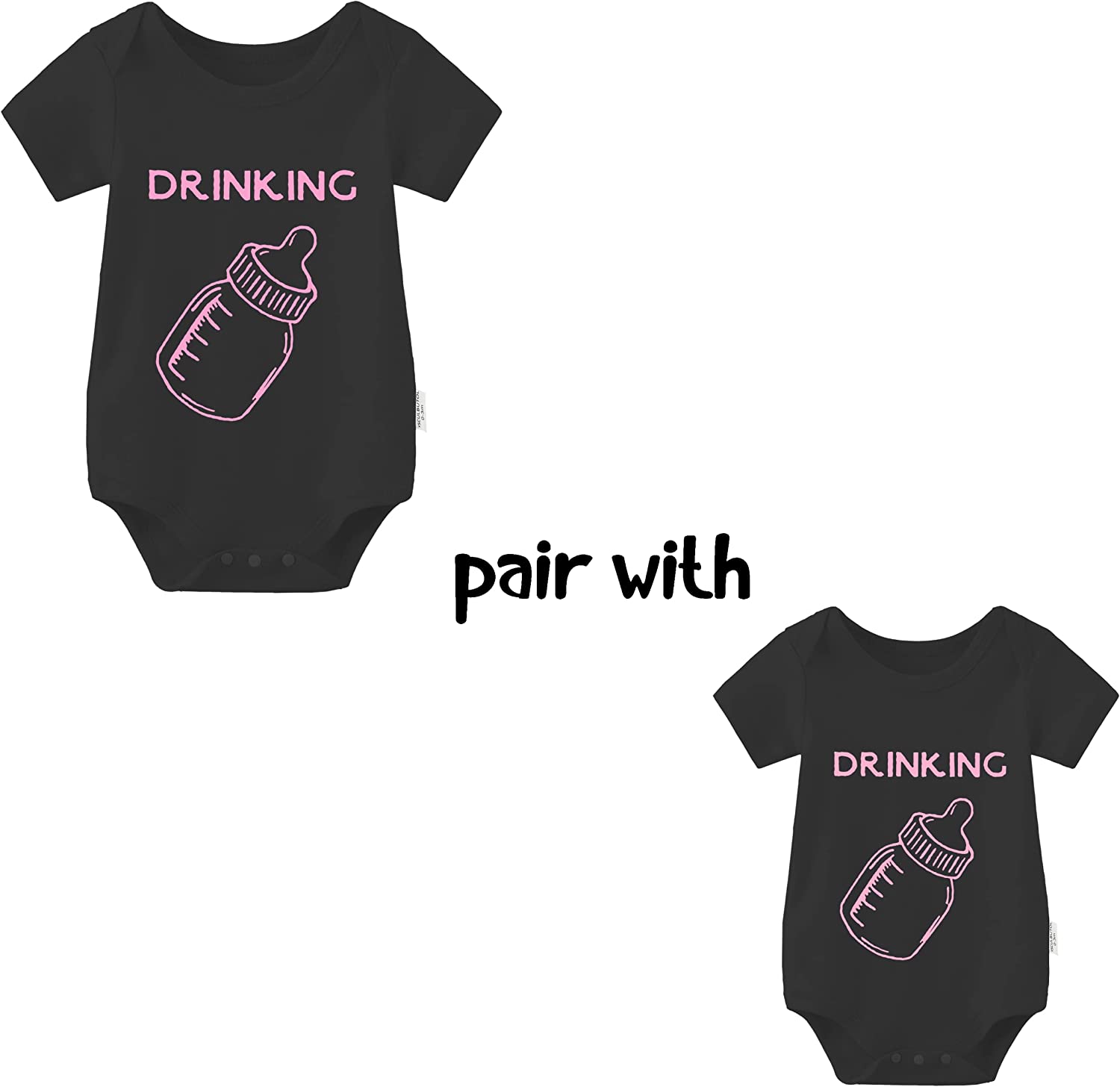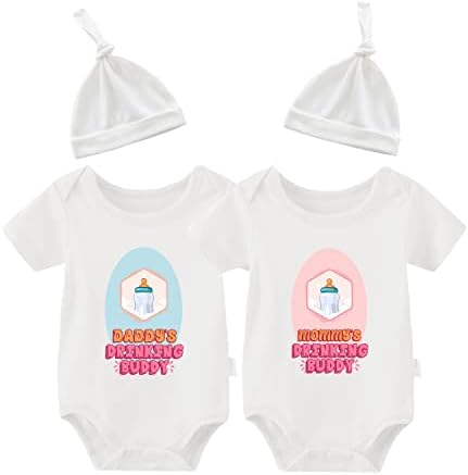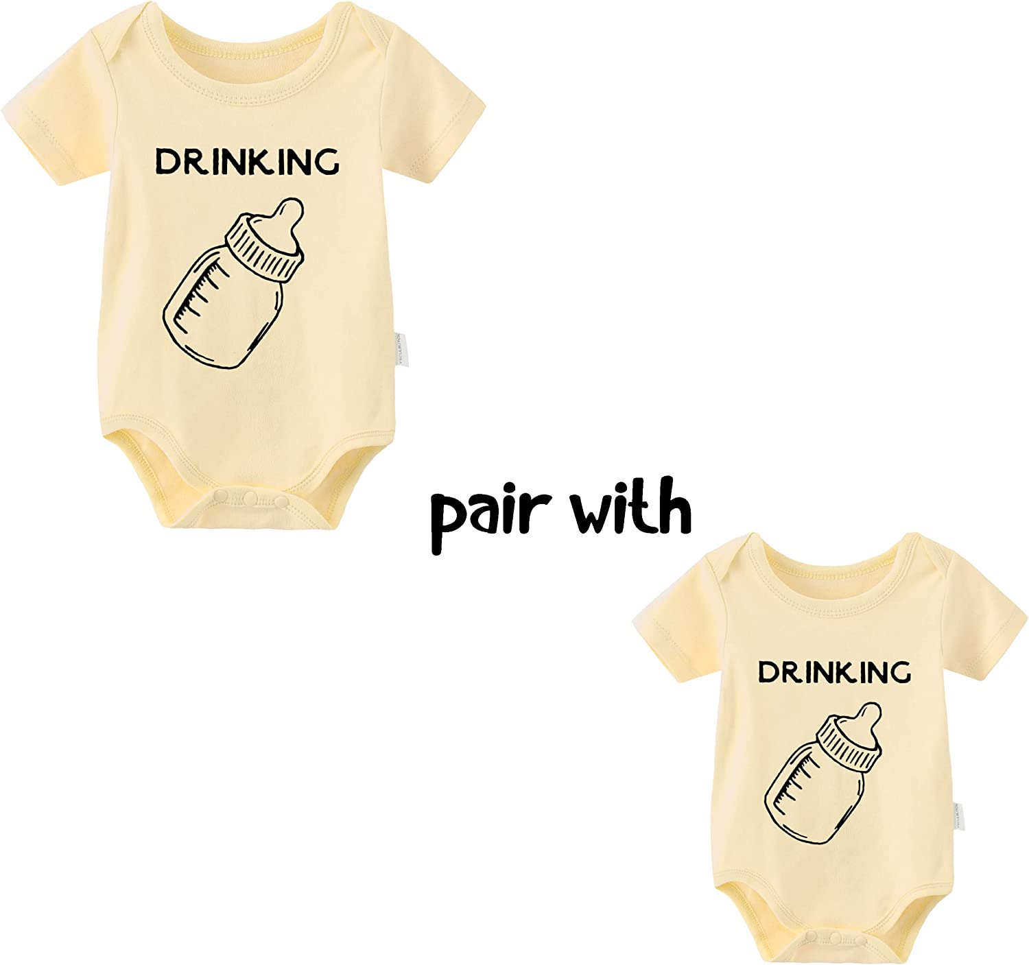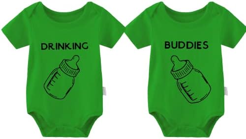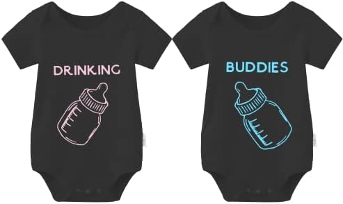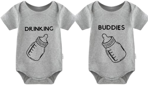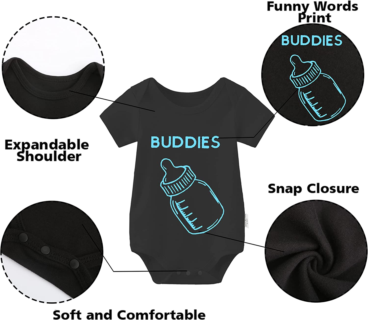 YSCULBUTOL Baby Twins Bodysuit Drinking Buddies Newborn Baby Romper Twins Boy Girl Matching Outfits Triplets Set