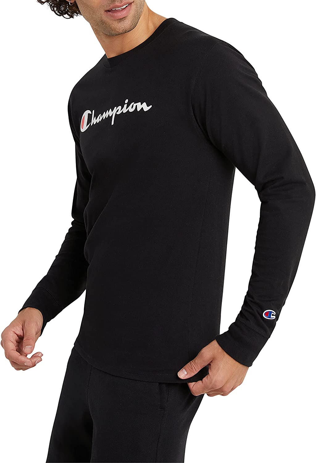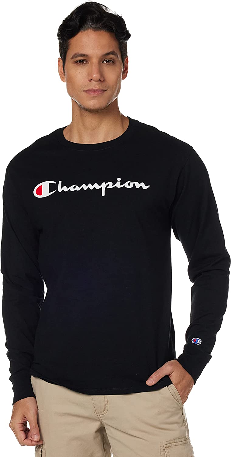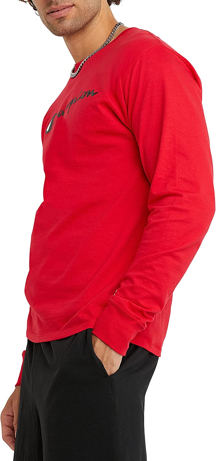 Champion Men's Long Sleeve T-Shirt, Classic Jersey Long-Sleeve Tee Shirt for Men, Script