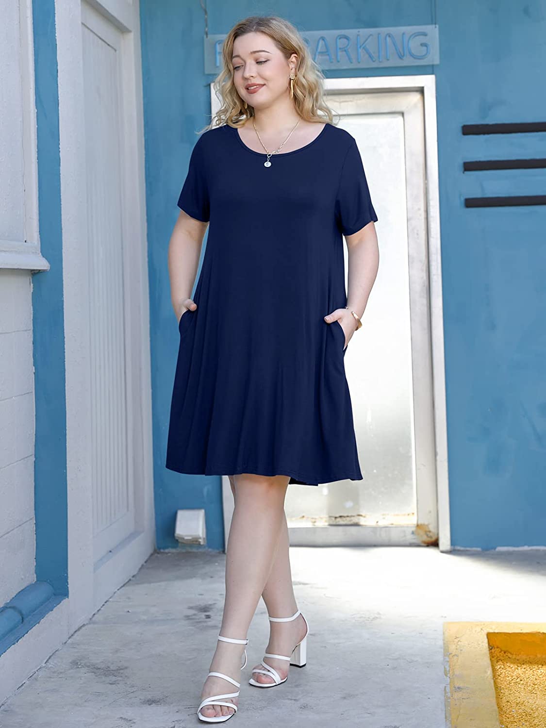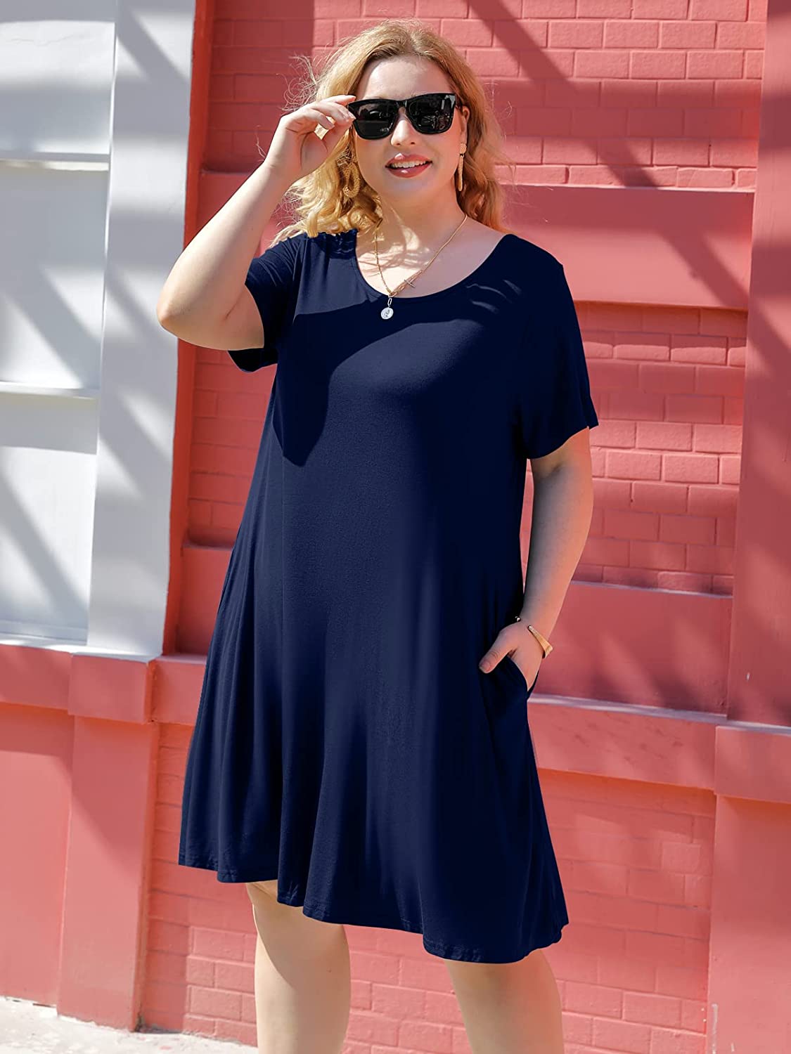 • 【Classic Design】Stay comfortable and stylish with JollieLovin plus size casual dresses. Featuring a scoop neck, two side pockets, A-line cut, and above-the-knee length, these dresses are perfect for any occasion. Wear them in Spring and Summer or pair them with a coat in Fall and Winter for a chic look.