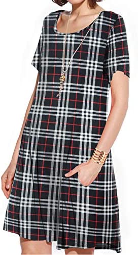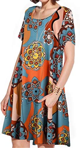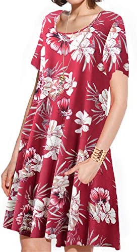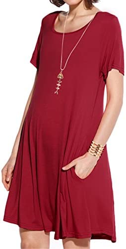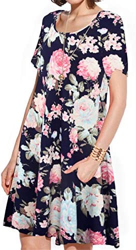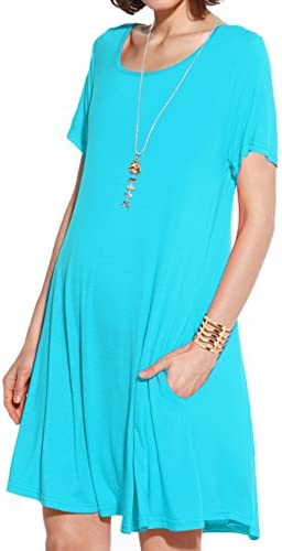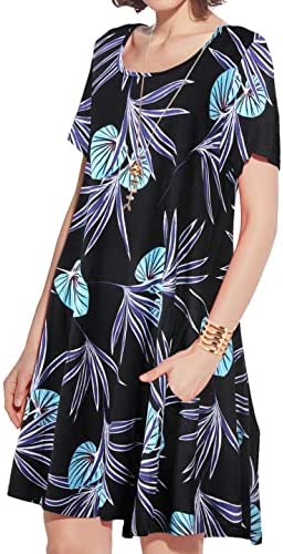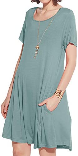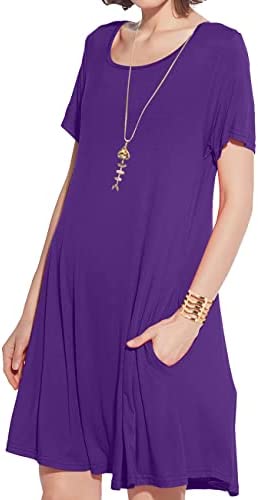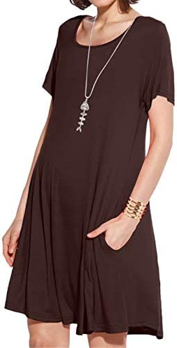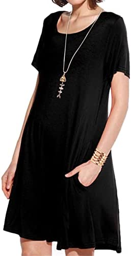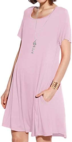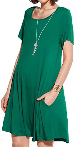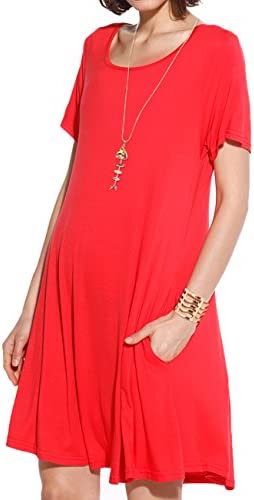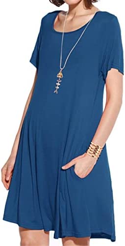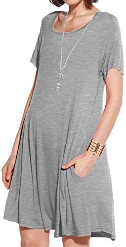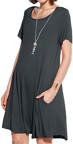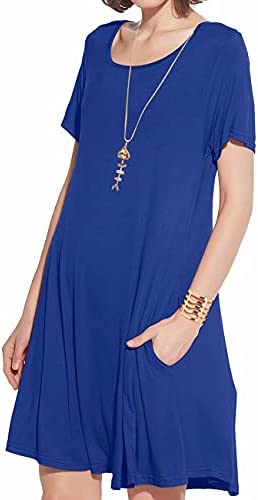 JollieLovin Women's Casual Swing Loose T-Shirt Dress Summer Short Sleeve Tunic Dresses with Pockets (Available in Plus Size)