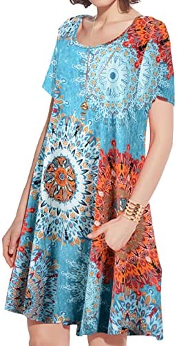 • 【Soft and Stretchy Fabric】The flared hemline t-shirt dresses for women are made of superior soft and stretchy fabric that is breathable and lightweight, ensuring maximum comfort. They won't shrink or fade, and are easy to wash and quick to dry, making them a great choice for long-term use. These swing tunic dresses are a great choice for summer wearing.