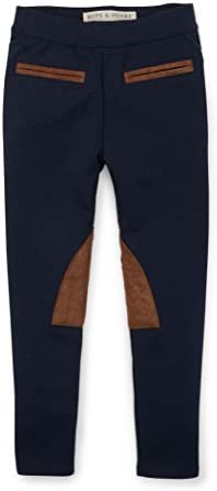 • For the equestrian at heart, our riding pant in luxurious ponte di Roma will be your girl's go-to pant of the season. Our cozy knit is much thicker than the average legging and offers easy pull-on functionality with a flat elastic waistband. Features a slim fit and lovely faux suede double welt decorative pockets and quilted knee patches.