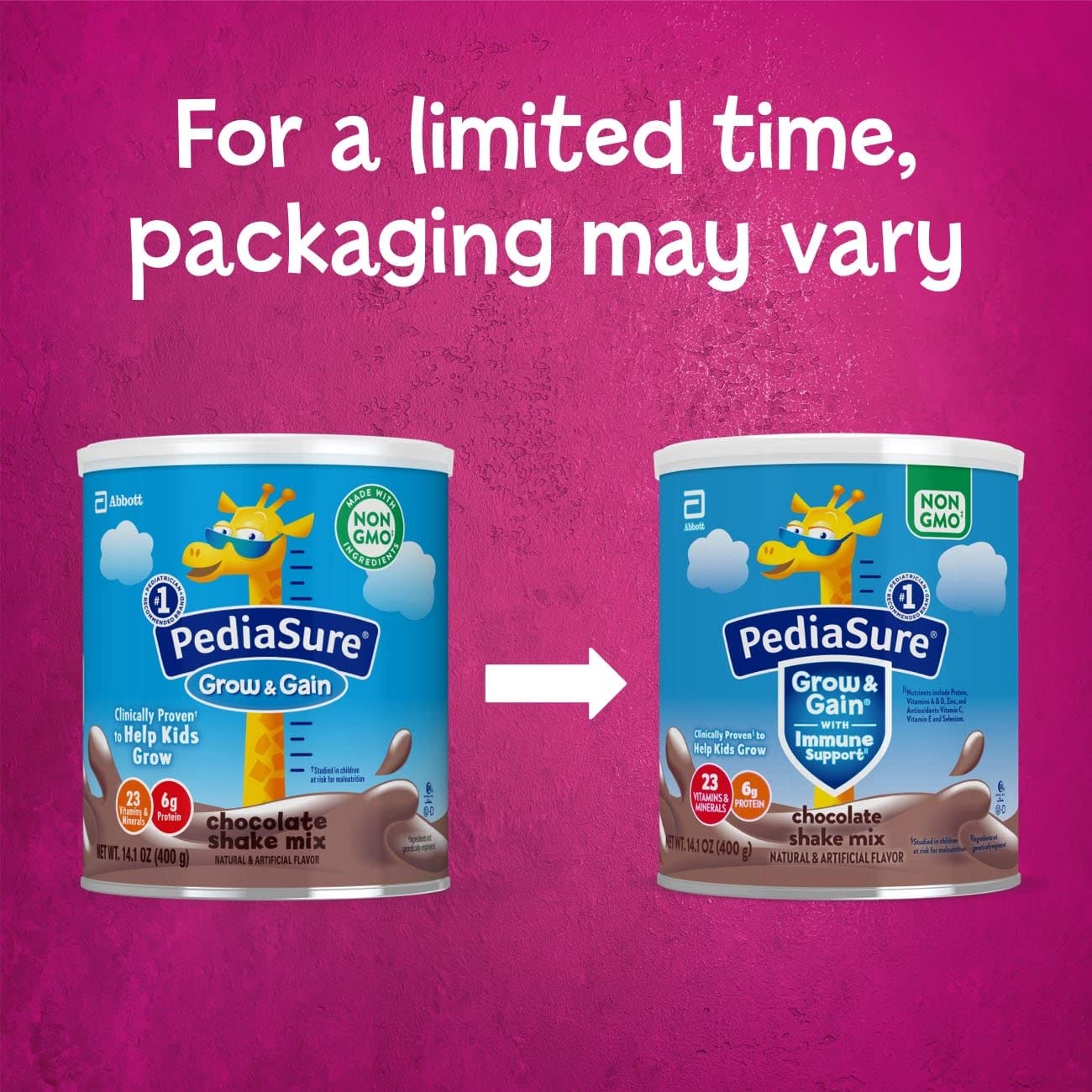 PediaSure Grow & Gain with Immune Support Shake Mix Powder,Kids Shake,23 Vitamins and Minerals,6g Protein,Helps Kids Catch Up On Growth,Non-GMO,Gluten-No,Chocolate,14.1-oz Can,3 Cans—24 Servings