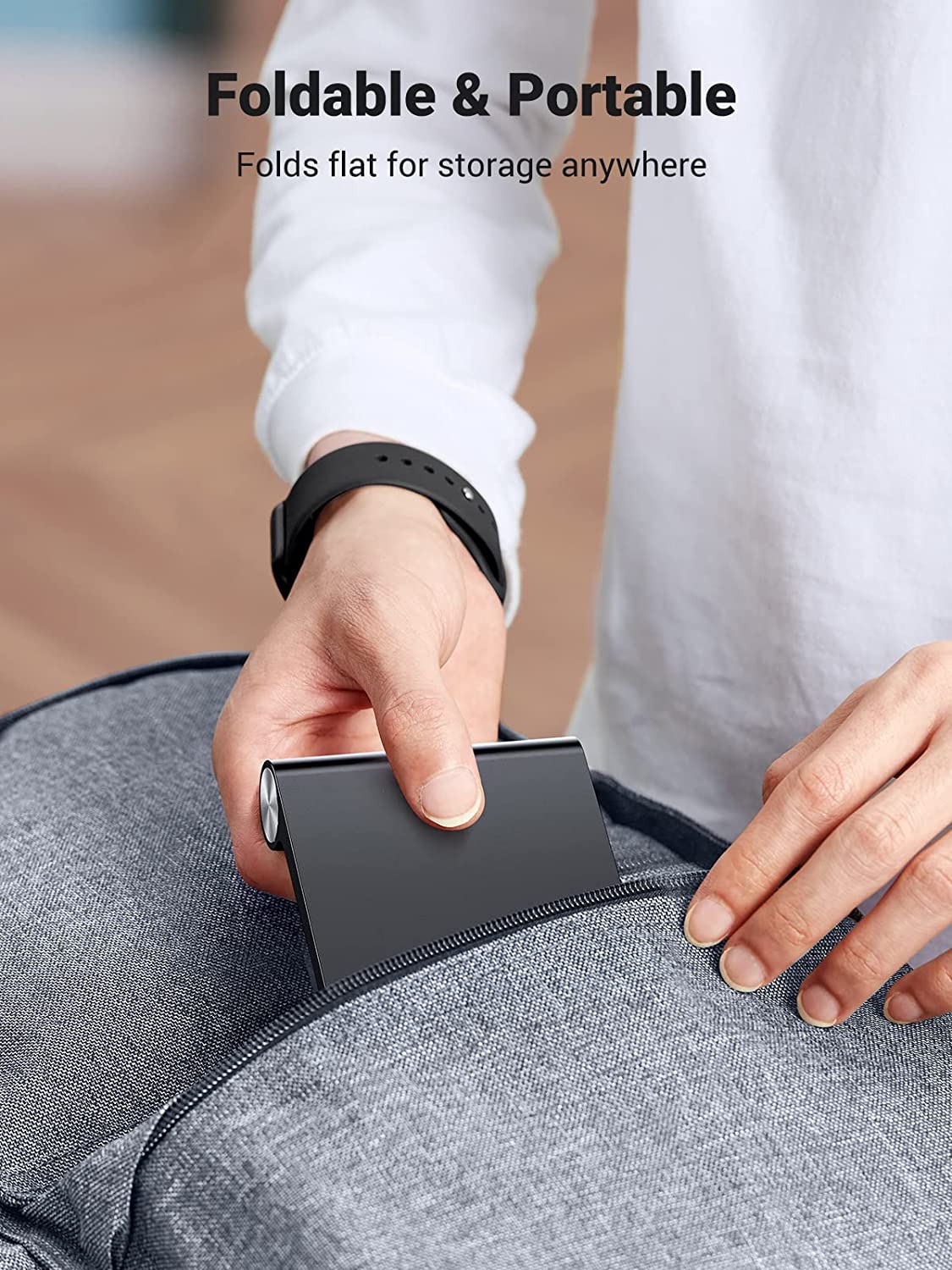 • Collapsible & Portable: UGREEN phone stand has a pocket size of 3.74" by 3.35" and only light weighed 2.2 oz. It can be easily folded into a compact size for storage or air travel. Fully foldable design without bumps enables you to slip it into your backpack without scratching to any precious gadgets. A perfect companion as home desk accessories, office supplies or travel electronic accessories.