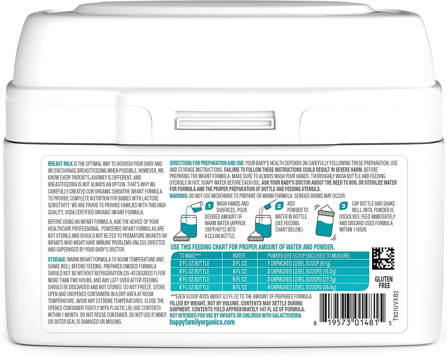 • Our Happy Promise: All products are certified USDA organic, made with non-GMO ingredients grown without the use of toxic persistent pesticides and in packaging made without BPA, BPS, or phthalates