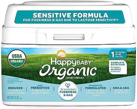 Happy Baby Organics Infant Formula Milk Based Powder packaging may vary, Stage 1 Sensitive, 21 Ounce