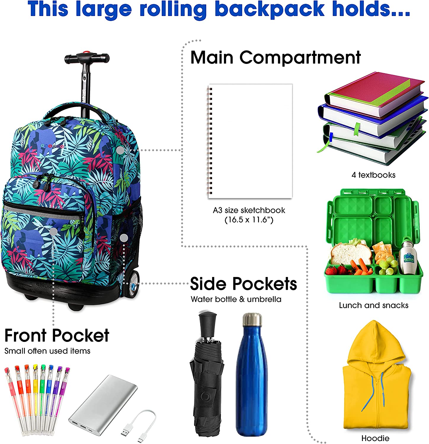 • Rolling Backpack — Convertible wheeled backpack offers the load carrying ability of a rolling bag with wheels and the portability of a school backpack. For kids and adults who carry a lot