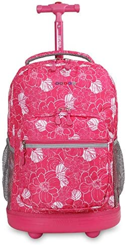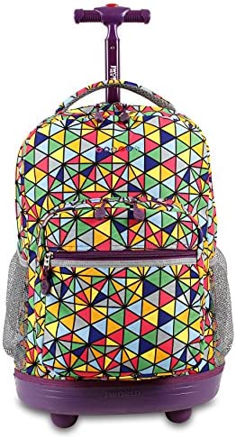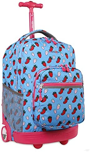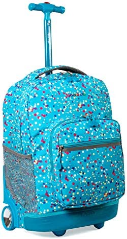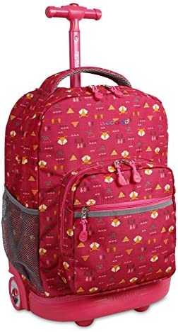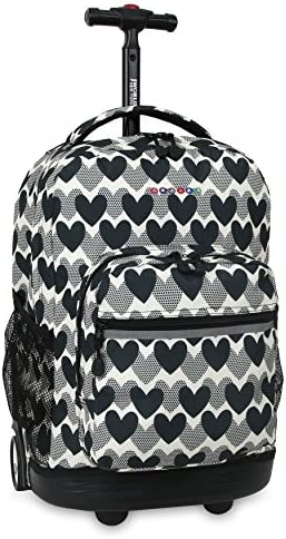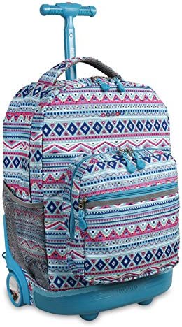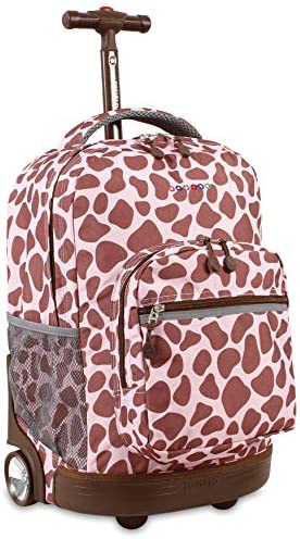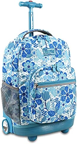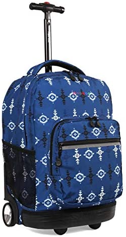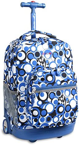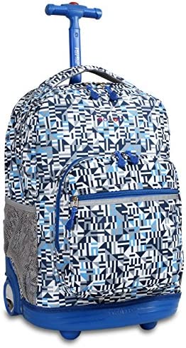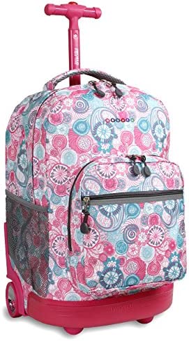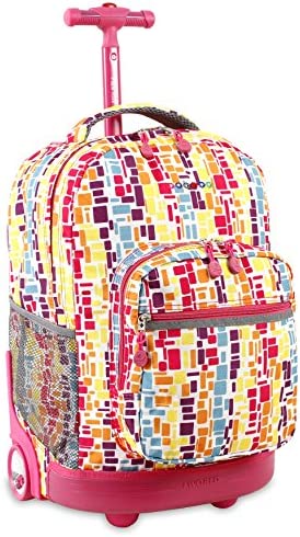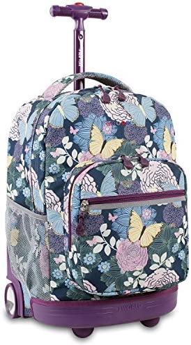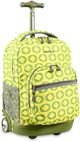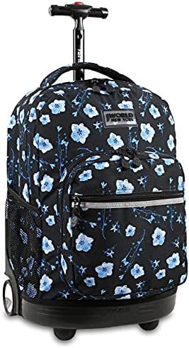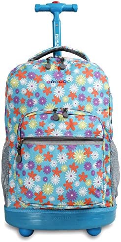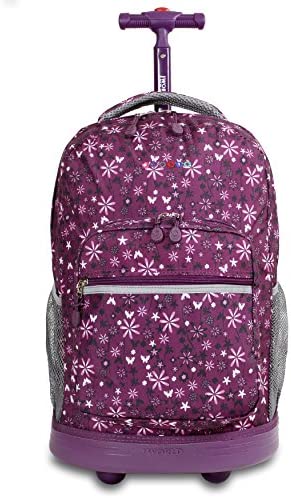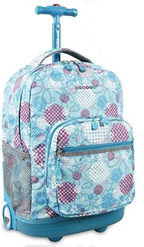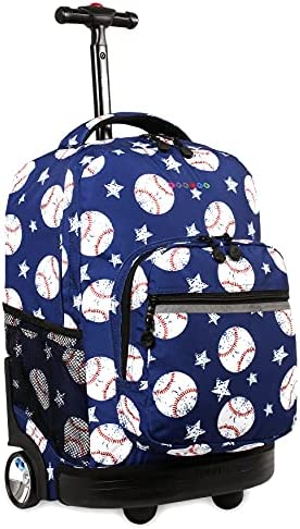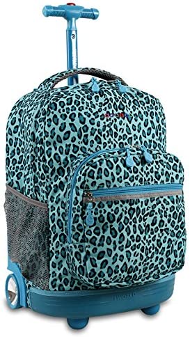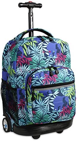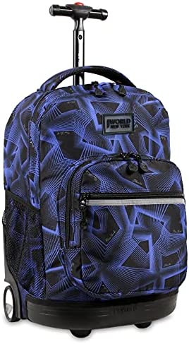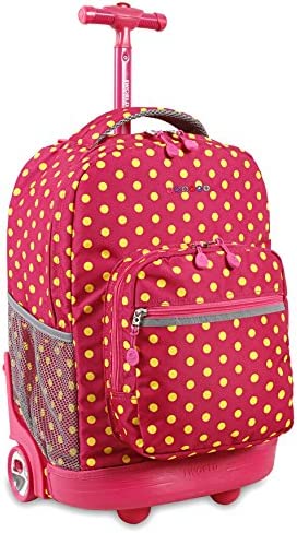 This rolling backpack for women and men converts from a rolling back on wheels into a wearable backpack with shoulder straps. Features a large main compartment, 2 mesh side pockets and a front pocket organizer. Measuring 18 x 13 x 9 inches, this backpack is also designed to be used as an underseat carry on bag for airplane travel. The single-tube aluminum handle extends to 34 or 39 inches for easy maneuverability by kids and adults up to 6’ 3” tall. Telescoping handle stores nested in bag. Molded rubber bottom holds up to the punishment of dragging on pavement. No more holes in the bottom of your kids rolling backpack! Made of durable ripstop polyester fabric with a metal frame and reinforced edges, this rolling backpack for boys and girls has a water resistant coating to keep your gear dry. Reflective tape gives night visibility. Features cushioned air mesh shoulder straps and back pad, or use the padded handle to carry this rolly backpack for girls and boys. This bag with wheels for kids and adults quickly converts into a wearable backpack when going up stairs or over rough ground, just pull out backpack straps. To convert back to a rolling travel backpack, simply tuck the straps away in the back pocket—no having to unzip. Large rubber backpack wheels roll and turn effortlessly on sidewalks, paths and airplane aisles. Corner mounted wheels provide extra stability. Our Promise - at J World New York, we stand behind our products 100%. If you have any issues with this rolling backpack for girls and boys, we will make things right