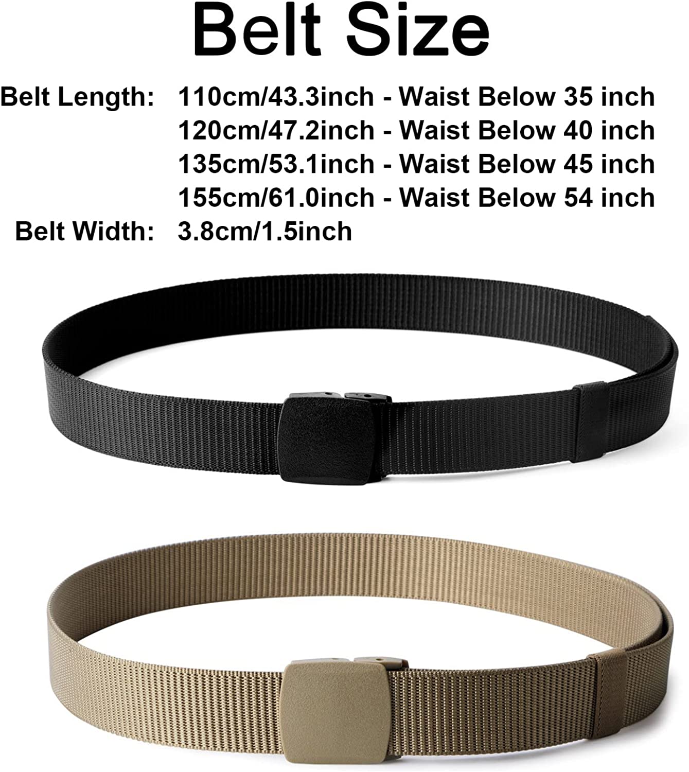 • ?[2 Pack Men Nylon Belts] - One Purchase for two high quality military belts which in different styles, and also get two free plastic buckles. The military belt makes with lightweight and wear-resisting nylon material that has a strong evaporation of sweat, more comfortable and breathable, feel more flexible, easy to dry in air.