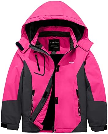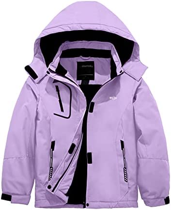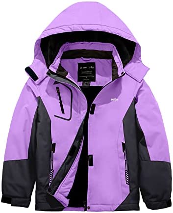 Keep The Cold & Snow Out - This fleece-lined snowboarding for girls is the ideal choice for keeping your kids warm and protected from harsh winds and snow. The hooded fleece ski jacket for girls features adjustable cuffs with thumbhole, detachable fleeced hood and wide collar, all designed to keep cold air and snow out and warmth in.
