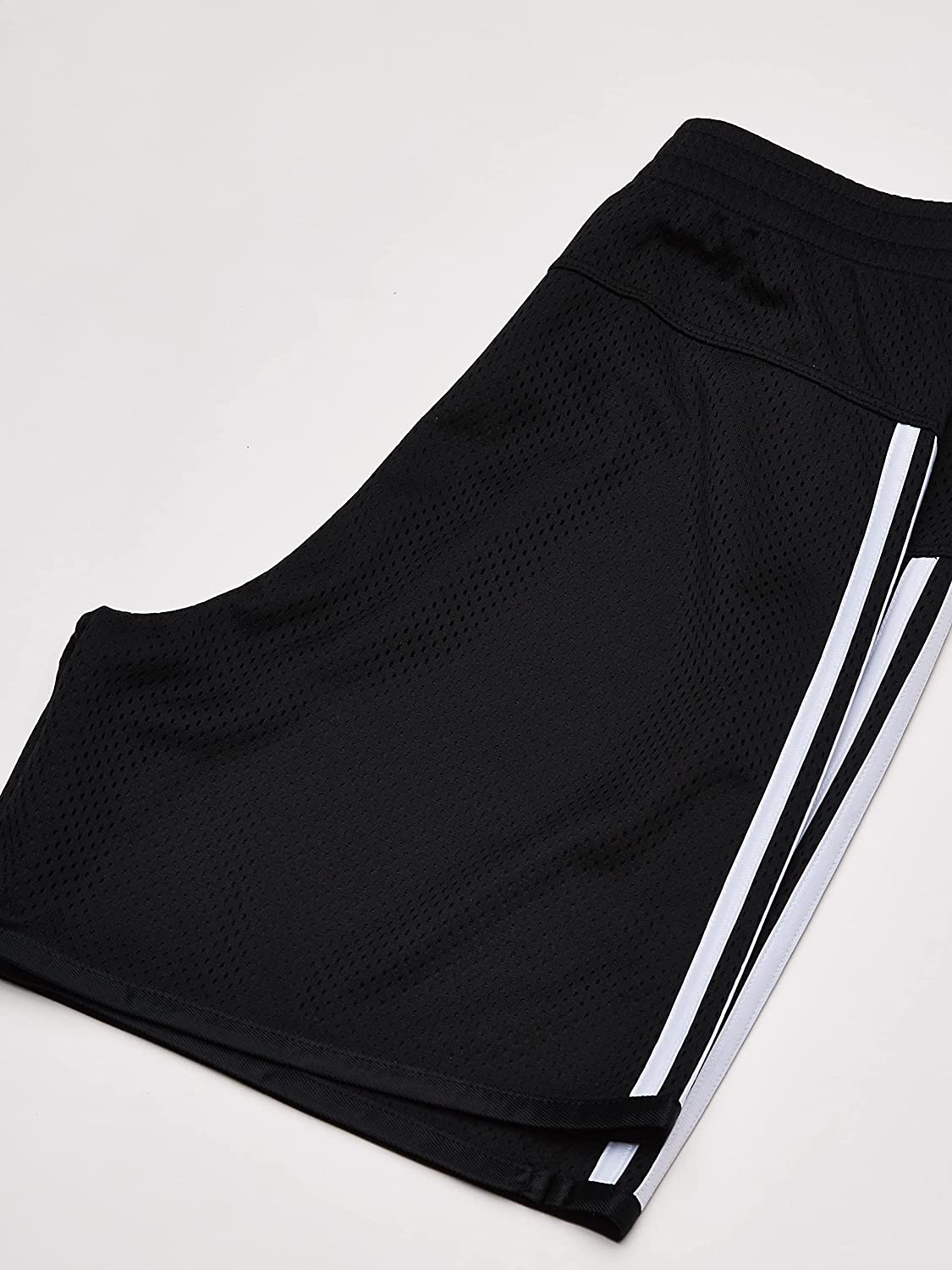 • Applied dazzle stripes down back sides of short. Short is lined. Adidas brand mark heat transfer on left leg