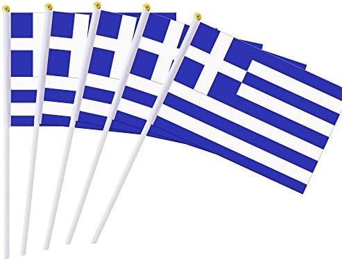 25 Pack Hand Held Greece Flag Greek Flag Stick Flag Round Top National Country Flags,Party Decorations Supplies For Parades,World Cup,Sports Events,International Festival