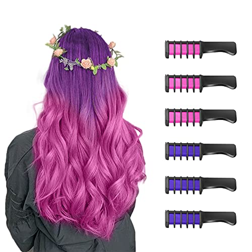 New Hair Chalk Comb Temporary Hair Color Dye for Girls Kids, Washable Hair Chalk for Girls Age 4 5 6 7 8 9 10 Birthday Cosplay DIY, Easter, New Year 6 Colors