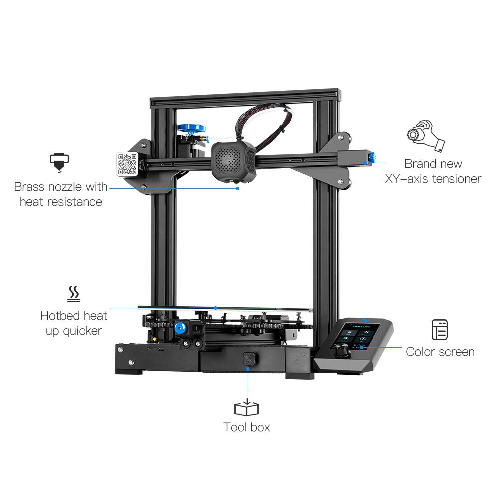 • Effortless Filament Feed-in: Ender-3 V2 adds a rotary knob on the extruder, making loading and feeding filament process much easier; Brand new operation UI system and 4.3" smart color screen greatly improve user experience.