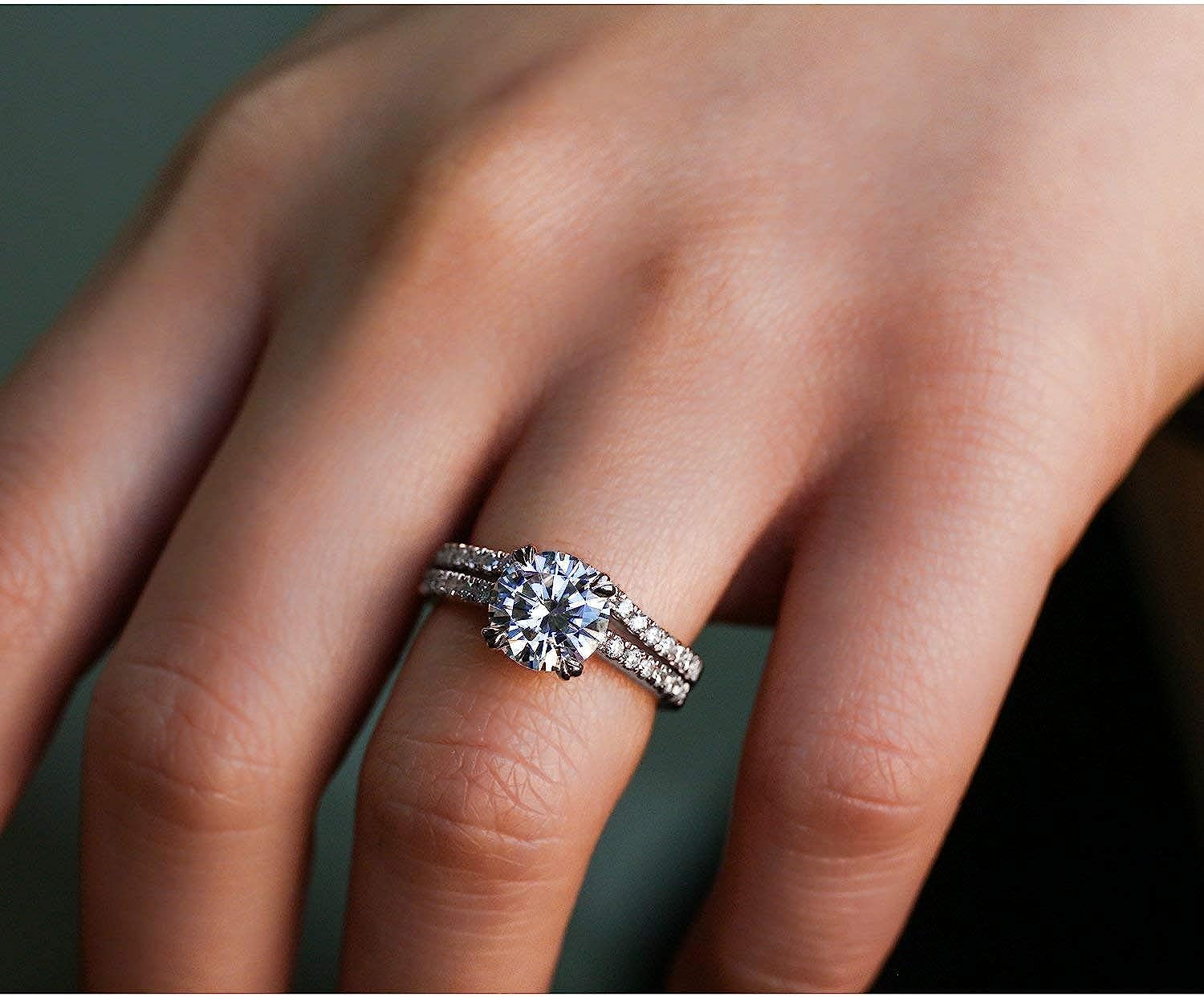 Kobelli Moissanite and Lab Grown Diamond Bridal Rings Set 2 1/3 CTW 14k White Gold (GH/VS, DEF/VS)