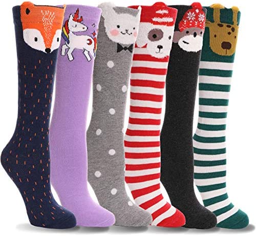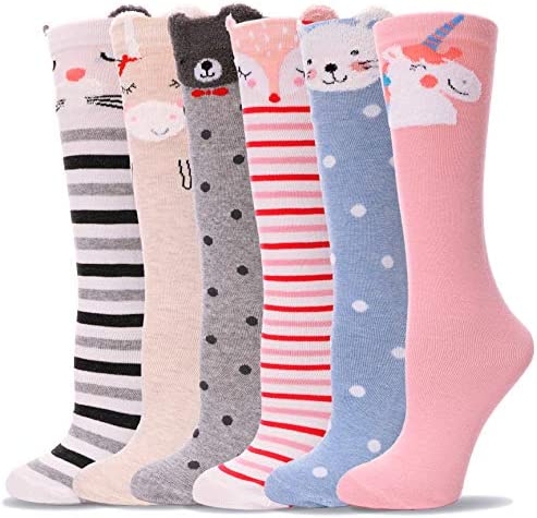 SIZE TIPS : These cartoon colorful tall socks for girls are approximately 15-16.5 Inch, suitable for most girls who are 3-12 years old. The knee high socks for girls are whether over calf or knee, depending on how long your girl's legs are.