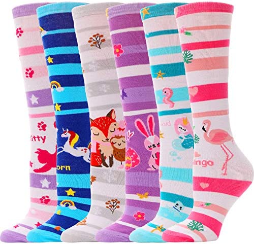 FIT MANY OCCASIONS : The high-quality cotton cartoon socks are suitable for different situation. You can wear them as school socks, outdoor socks, home socks, christmas socks, boot socks, funny socks, house socks, cozy socks, novelty socks, colorful socks, cool socks, cartoon socks, cute socks, fun socks, sleeping socks, little girls socks in spring, fall, winter season.