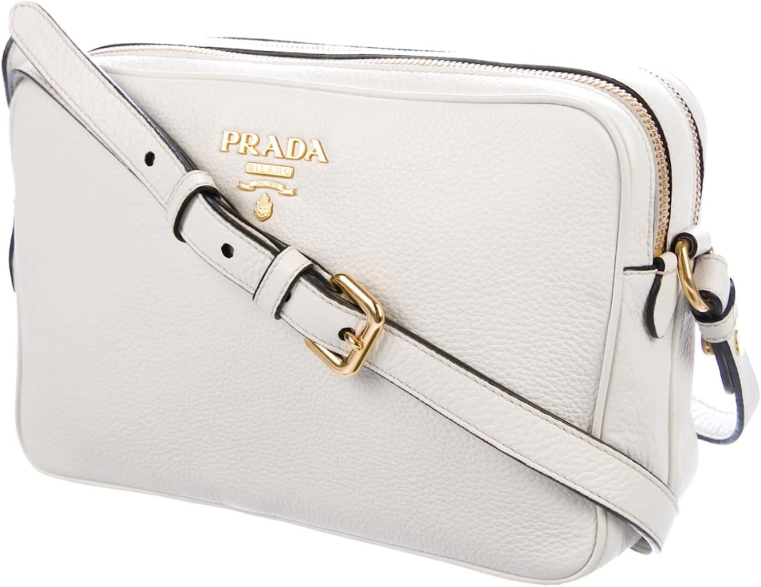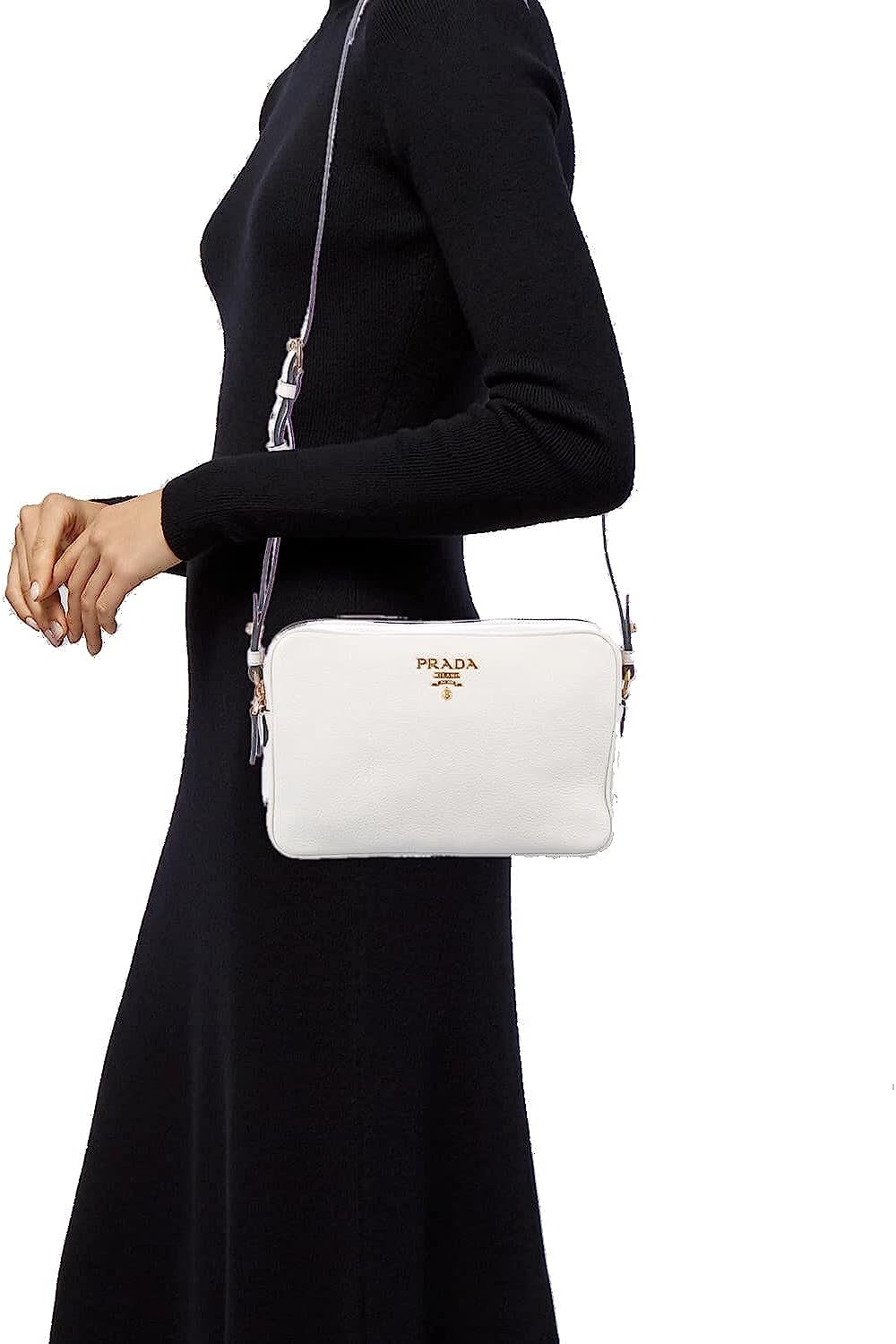 This Prada Women's White Vitello Phenix Leather Crossbody Handbag is a beautiful and elegant handbag that can be worn with everyday looks. It is practical yet luxurious and comes with an adjustable shoulder strap.