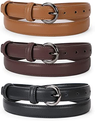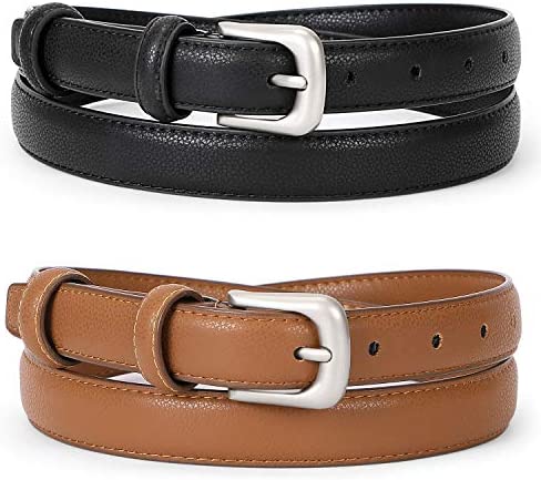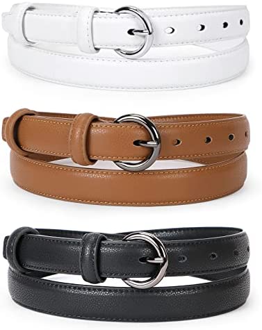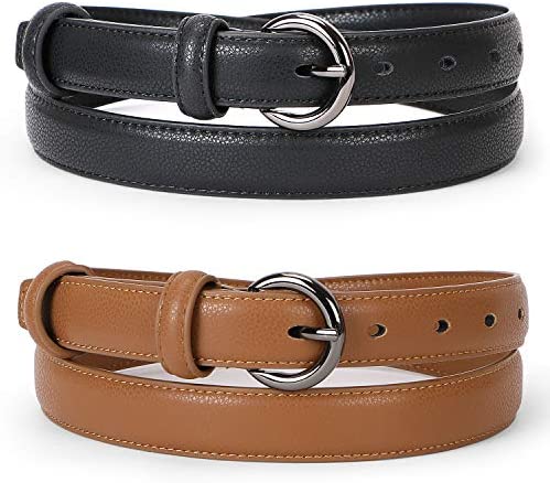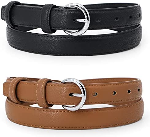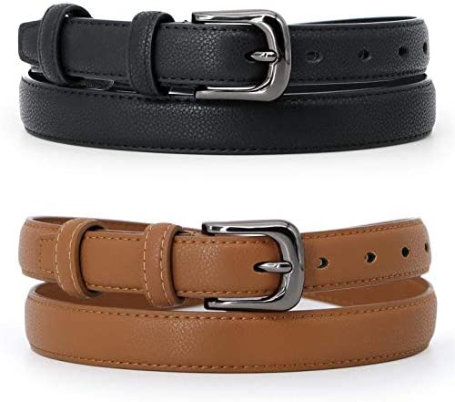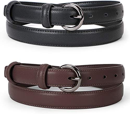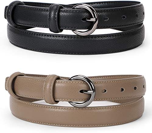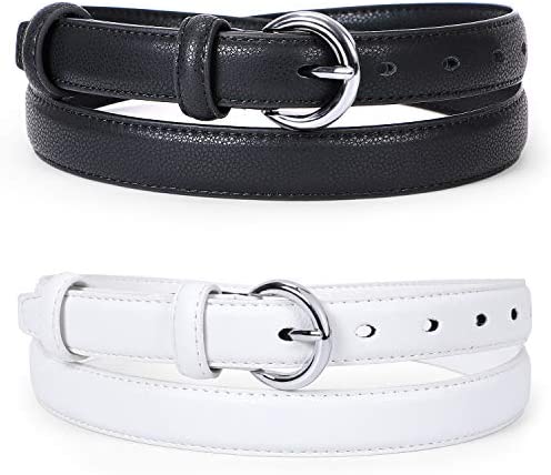 DESIGN- Solid pin buckle skinny thin waist belt in black brown coffee and white colors to match your different outfits and give you the classic look.One order for two different color belts.