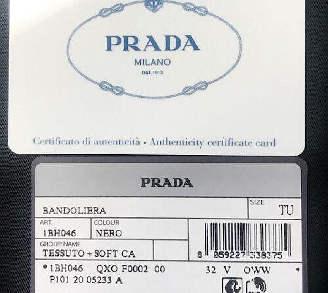 Prada Bandoliera Tessuto Nylon Soft Calf Trim Black Crossbody Bag 1BH046