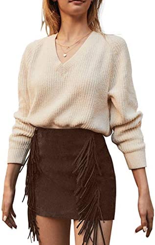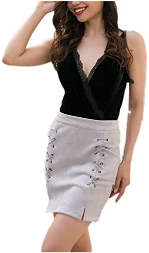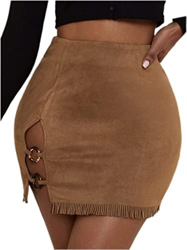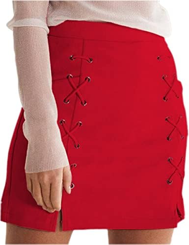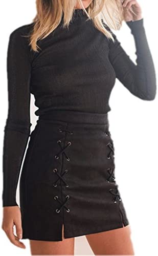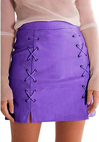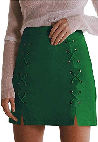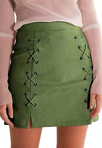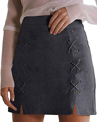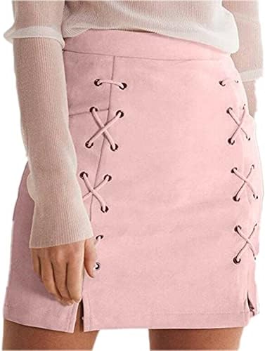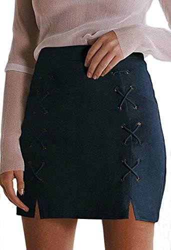 katiewens Women's Classic High Waist Lace Up Bodycon Faux Suede A Line Mini Pencil Skirt