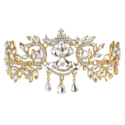 ❤ Color: Gold Color Plating with Clear Crystal .Material: durable hard alloy and rhinestone.