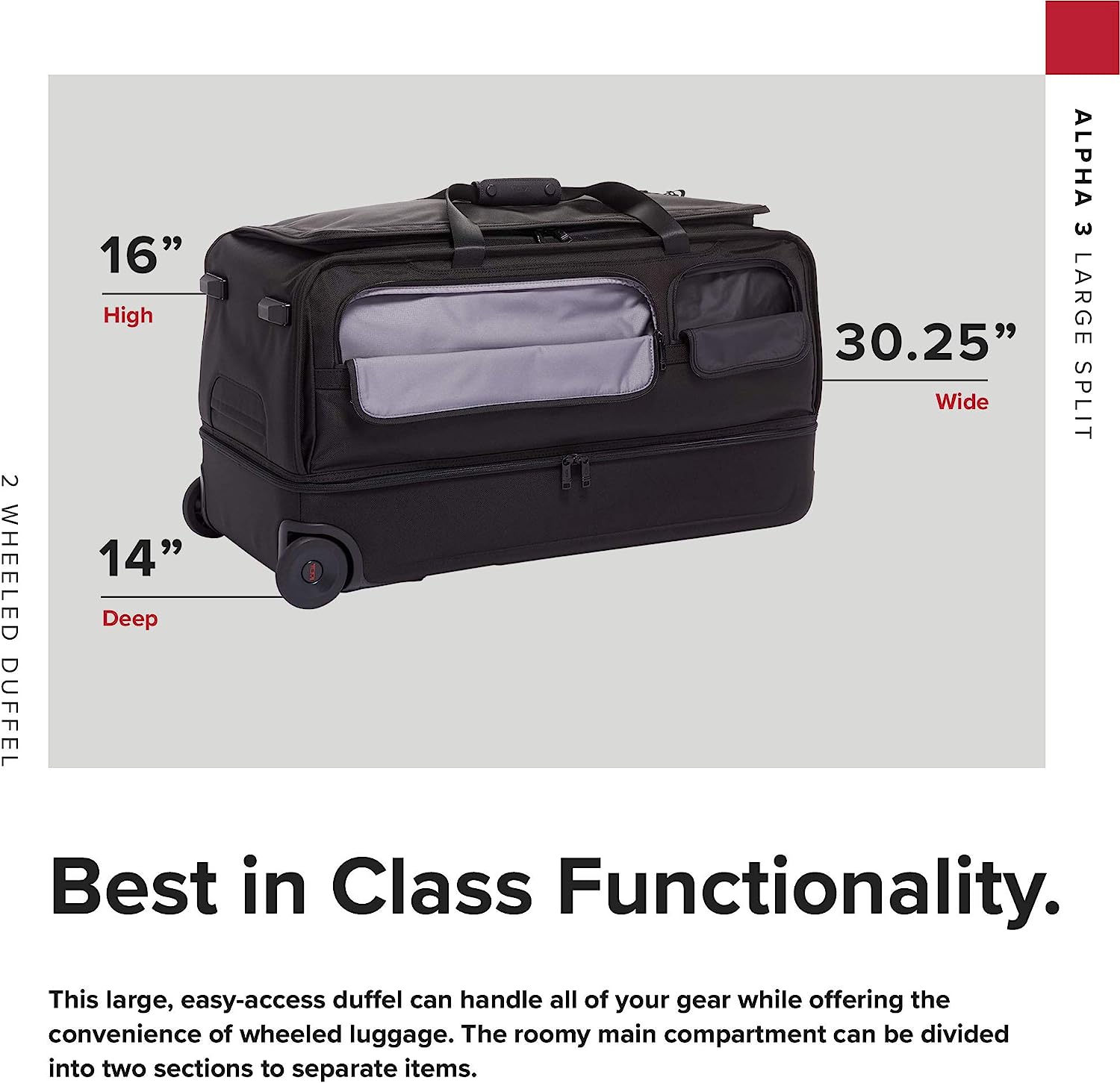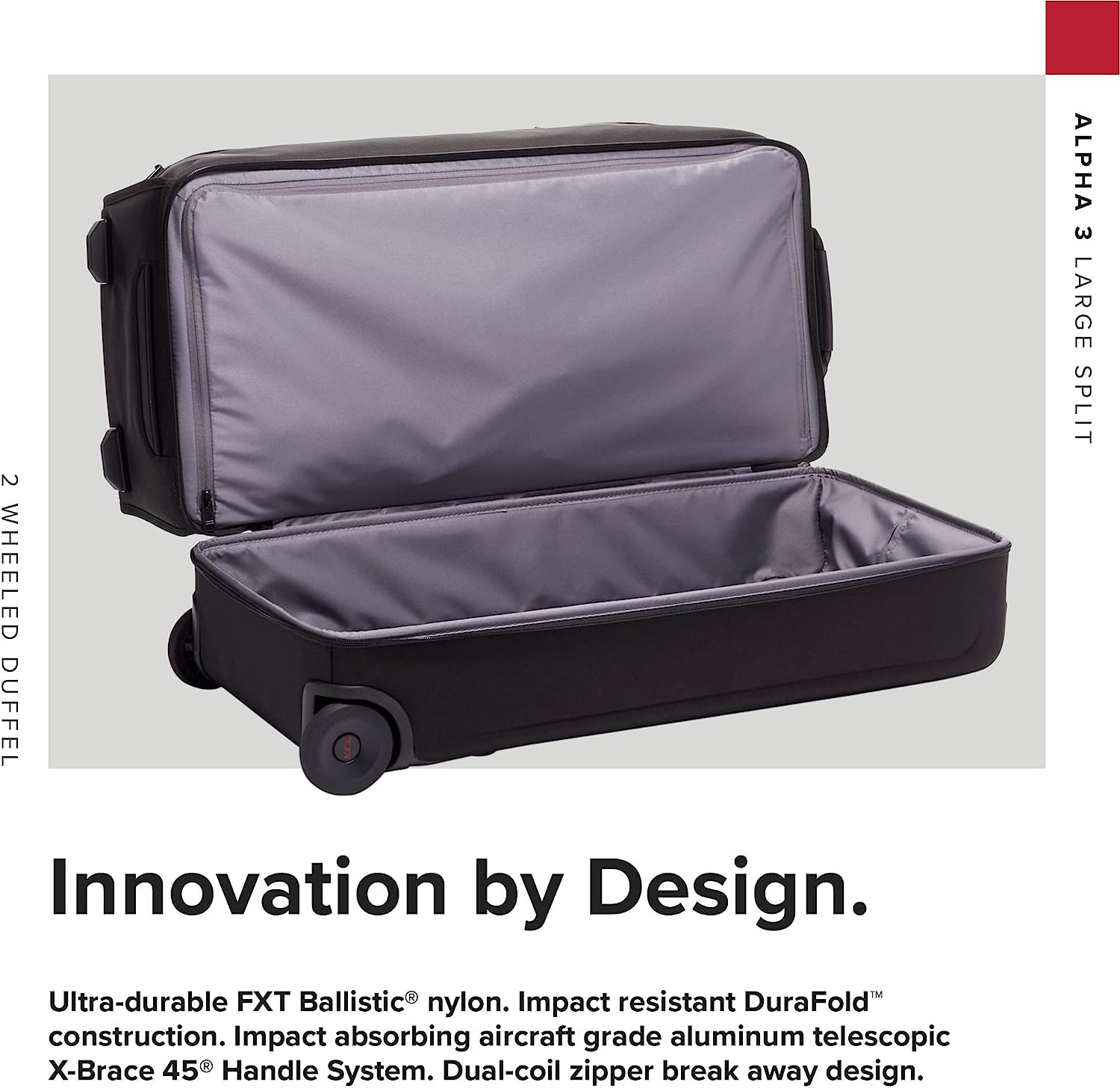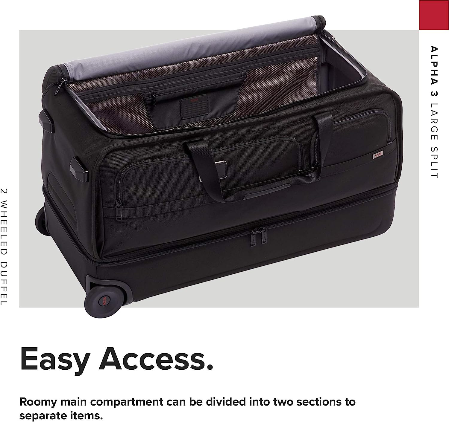 TUMI Alpha 3 Large Split 2-Wheel Duffel Bag - With Quick Zip Interior - Rolling Luggage for Men and Women - Black