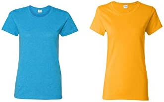 The Gildan Women’s Heavy Cotton T-Shirt is a go-to style for any female who wants to enhance her wardrobe with a basic that works with so many pieces. What makes it distinctly feminine is the semi-fitted, side-seamed silhouette combined with a narrow rib knit collar without top stitching. Decorate this versatile surface with screen printing, embroidery, iron-on transfers, bleaching or tie dye to enhance its appeal. Create a design collection by choosing companion styles for men, youth and toddlers.