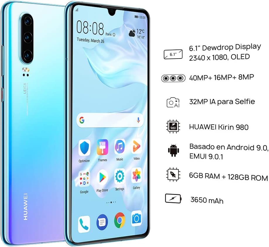 Huawei P30 128GB+6GB RAM (ELE-L29) 6.1" LTE Factory Unlocked GSM Smartphone (International Version) - Breathing Crystal
