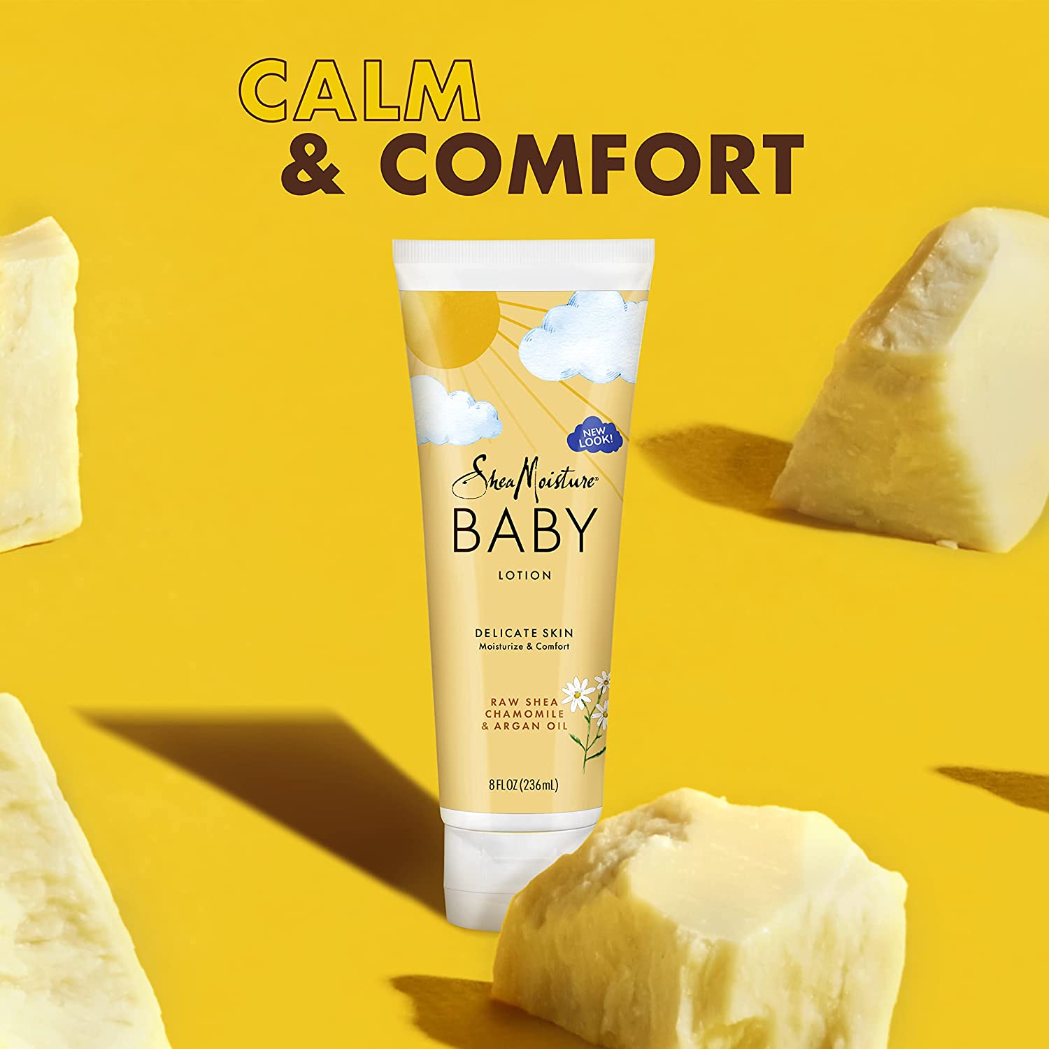 • Calm and comfort babyʼs delicate skin with this baby moisturizer by SheaMoisture. This is also the best baby skin care to use as a gentle baby face lotion or newborn lotion.