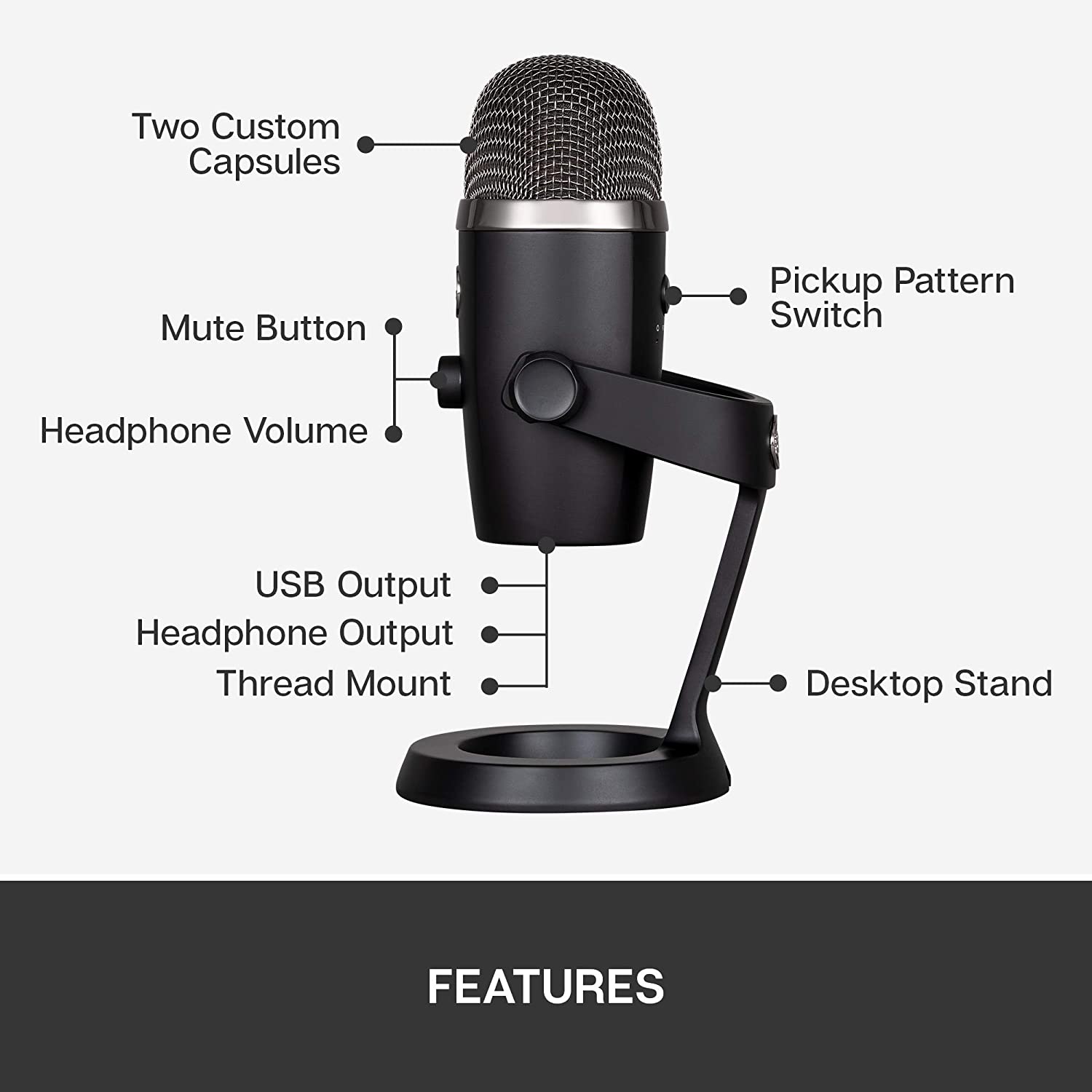 Blue Yeti Nano Premium USB Microphone for PC, Mac, Gaming, Recording, Streaming, Podcasting, Condenser Mic with Blue VO!CE Effects, Cardioid and Omni, No-Latency Monitoring - Blackout