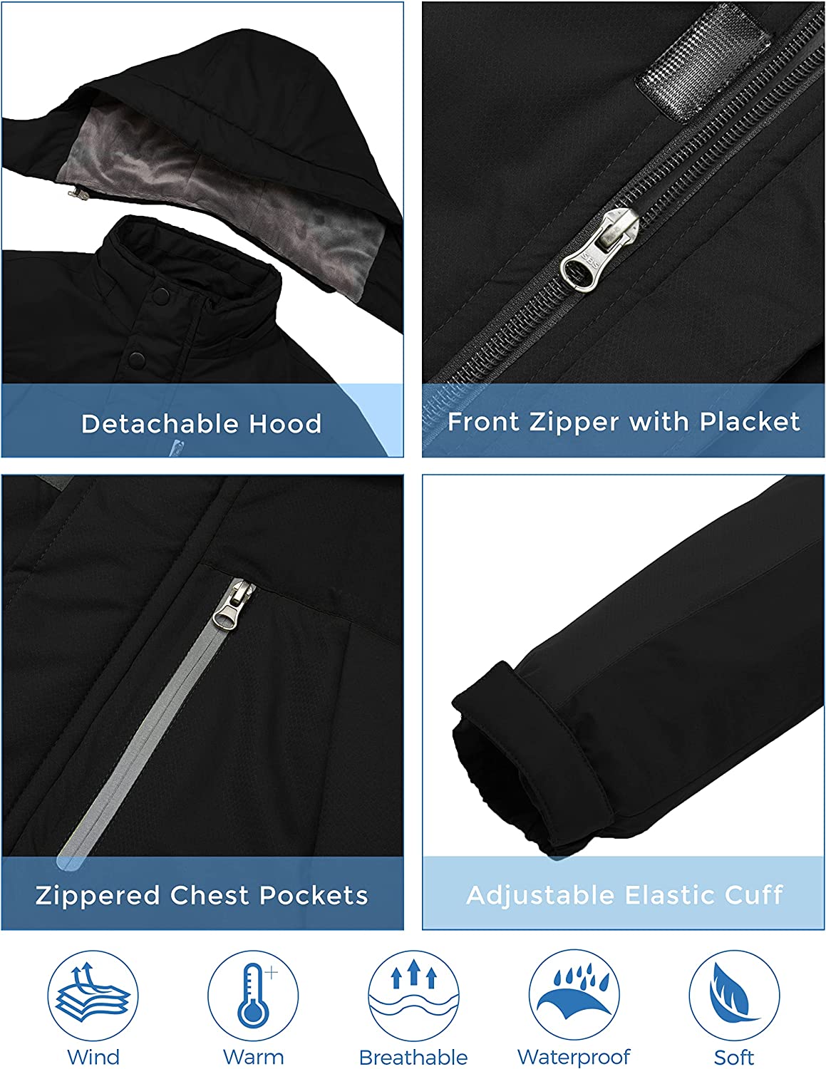 • Stop Chilly Air - The snowboarding jacket is fitted with a storm hood, stand collar with mercerized velvet, double enclosure with a full zipper panel and button placket and adjustable cuffs, all together makes the winter coat effectively prevent the chill out.