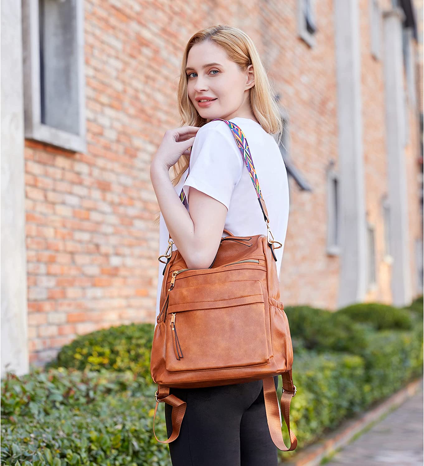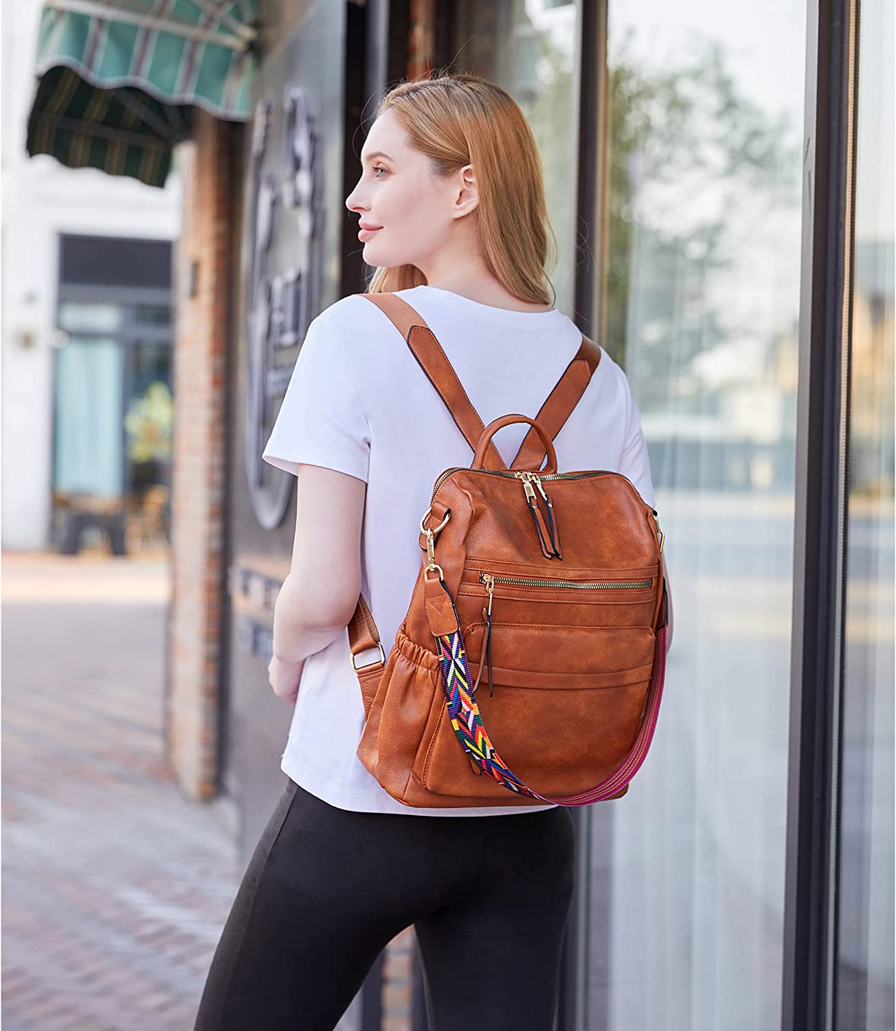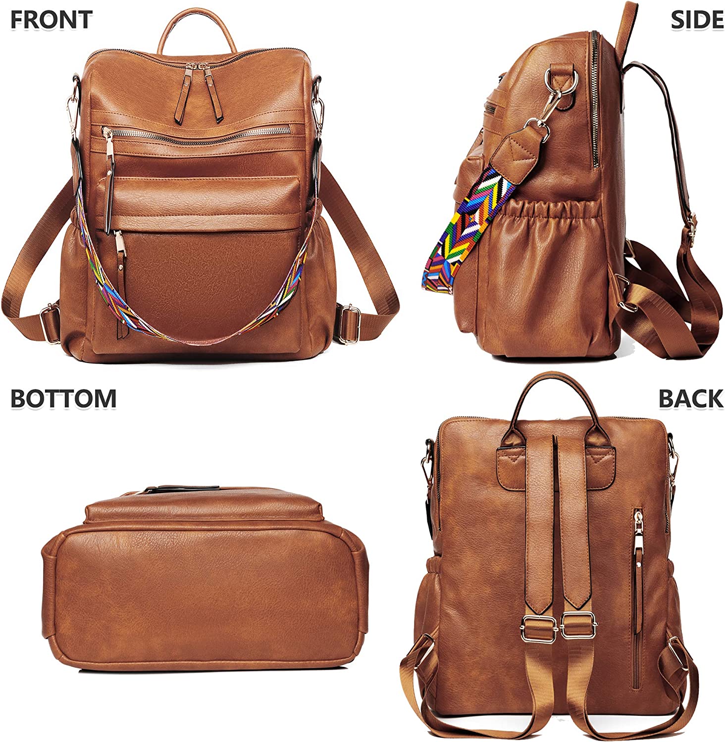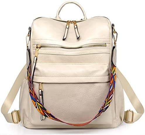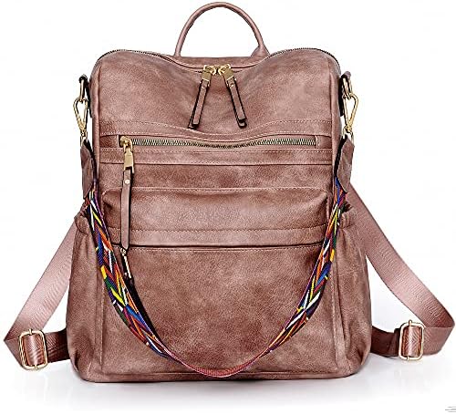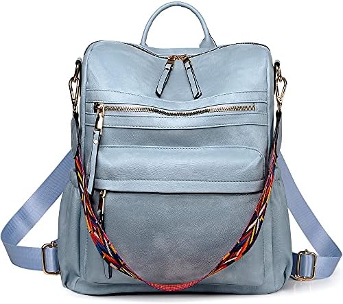 Dora & Liz Women Backpack Purse Fashion Leather Designer Ladies Convertible Travel College Shoulder Bags with Colorful Strap