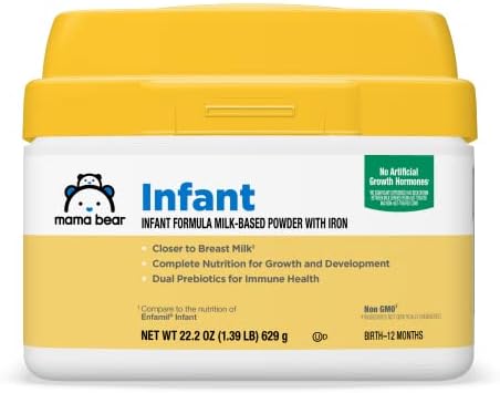 Amazon Brand - Mama Bear Infant Milk-Based Baby Formula Powder with Iron, Dual Prebiotics, Omega 3 DHA and Choline, Brain, Growth, Immunity, 22.2 Ounce (Pack of 1)