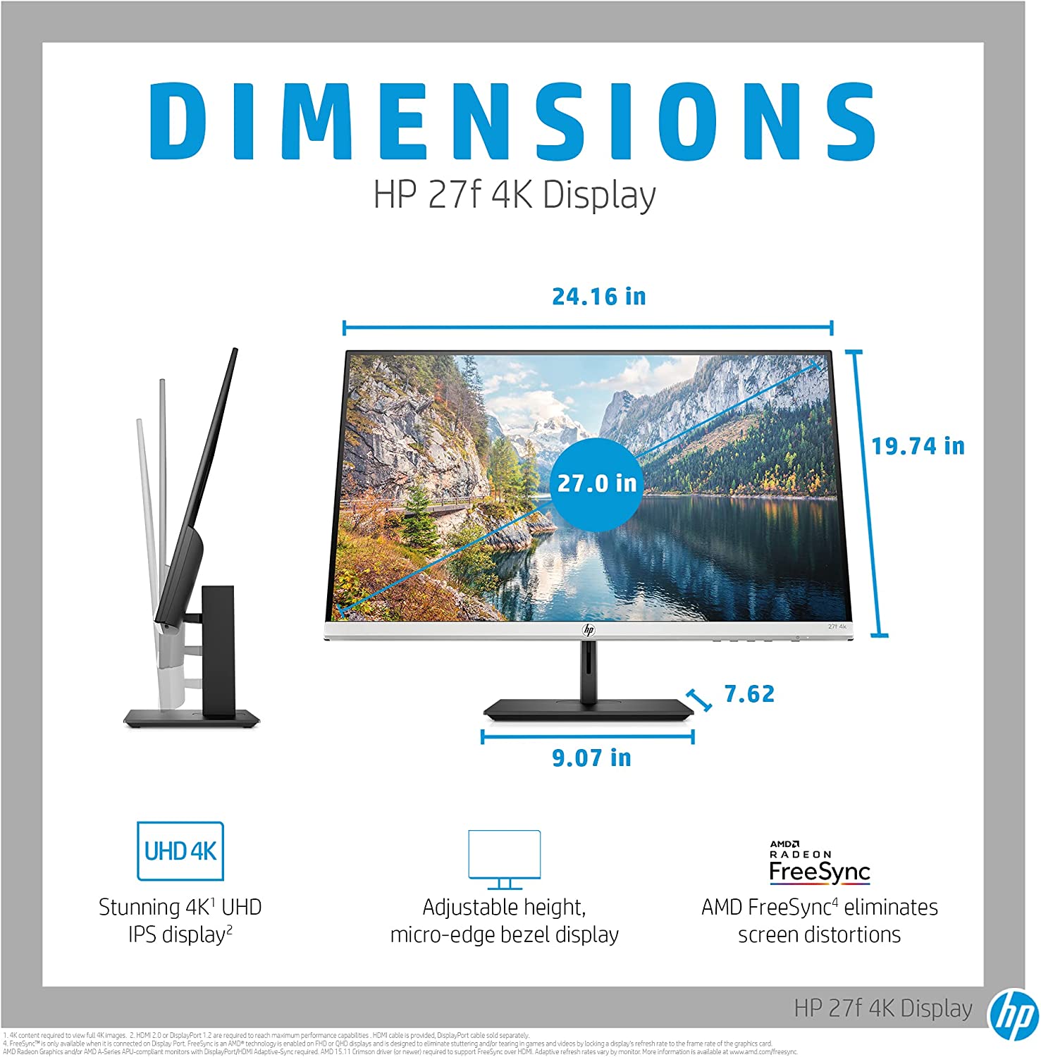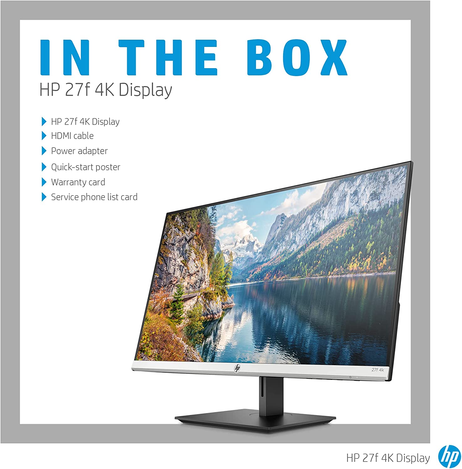 HP 27-inch Monitor with Height Adjust (27f 4K, Natural Silver and Black)