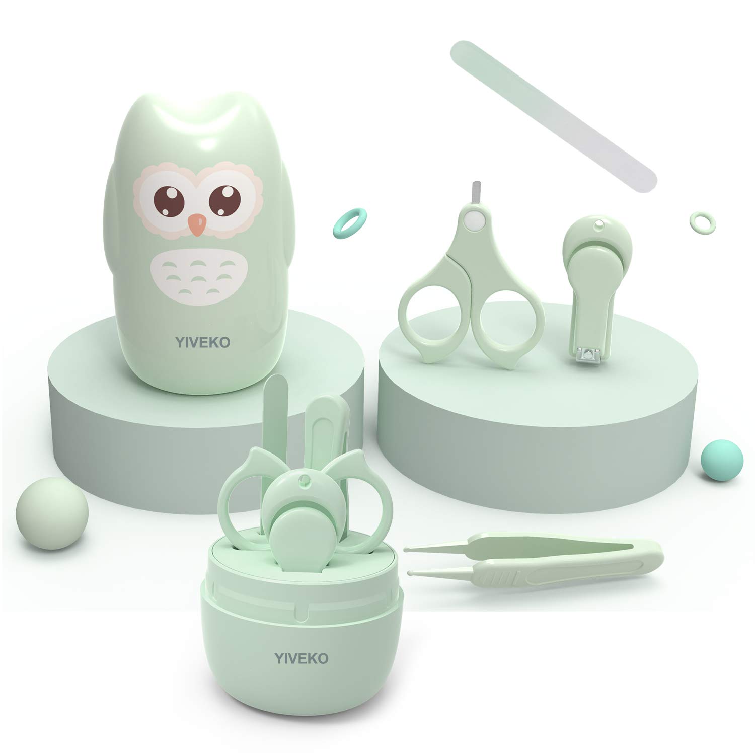 YIVEKO Baby Nail Kit, 4-in-1 Baby Nail Care Set with Cute Case, Baby Nail Clippers, Scissors, Nail File & Tweezers, Baby Manicure Kit and Pedicure kit for Newborn, Infant, Toddler, Kids-Owl Green