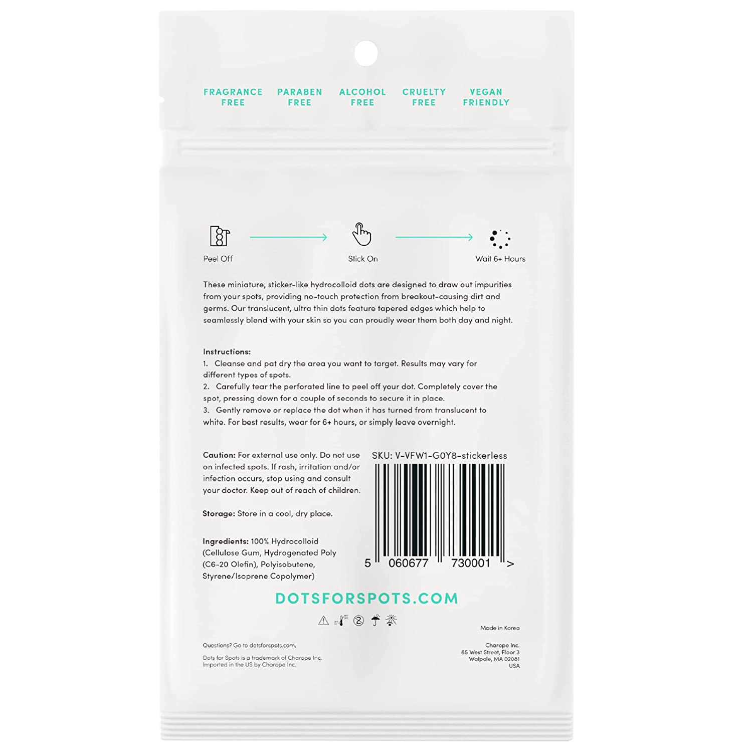 VISIBLE RESULTS - Dots for Spots blemish patches act as a protective cover to prevent picking, touching or popping of sensitive skin. They also work to minimize redness and the appearance of active breakouts.