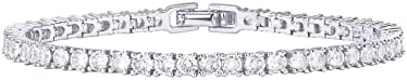 • Tennis bracelet featuring round 3mm AAAAA cubic zirconia stones in four-prong basket settings. Measures 6.5 inches in Length