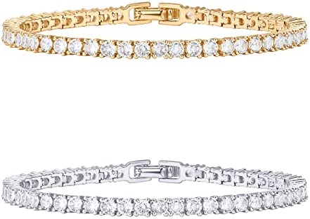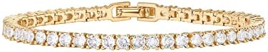 PAVOI 14K Gold Plated 3mm Cubic Zirconia Classic Tennis Bracelet | Gold Bracelets for Women | Size 6.5-7.5 Inch