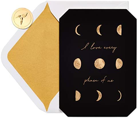 Share special anniversary congratulations with a handcrafted card by Papyrus! This celestial-themed anniversary card features a warm message in beautiful script, enhanced by shimmering foil and shiny gems. With unique artistry and exquisite materials, Papyrus anniversary greeting cards offer premium looks for special couples!