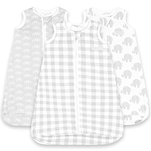 Baby Sleeping Bag Sack – Infant Sleeping Bags – 3 Pack - Pure Cotton Unisex Zip Up Wearable Blanket for Sleeping Boys & Girls (Grey Plaid, 12-18 Months)
