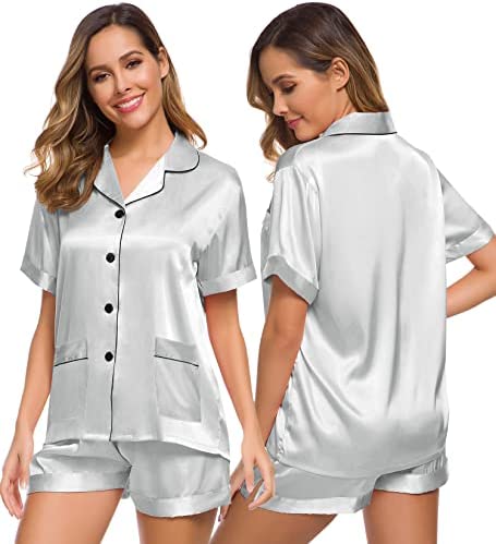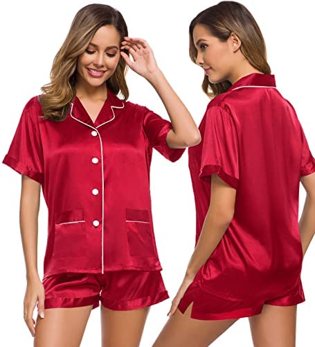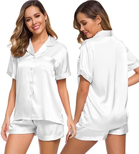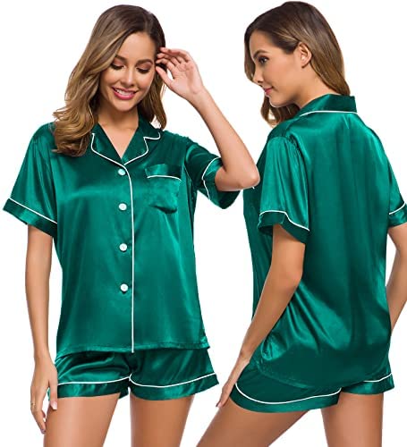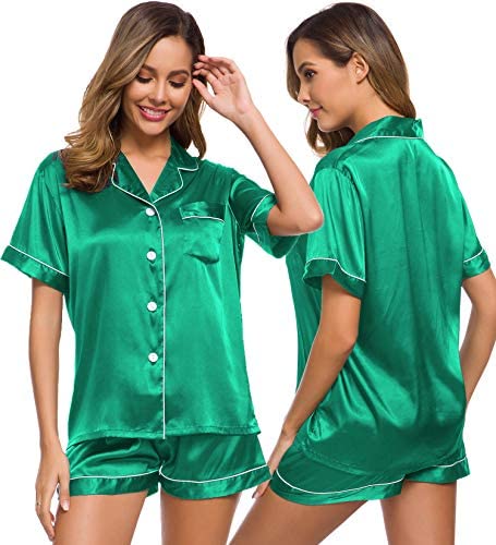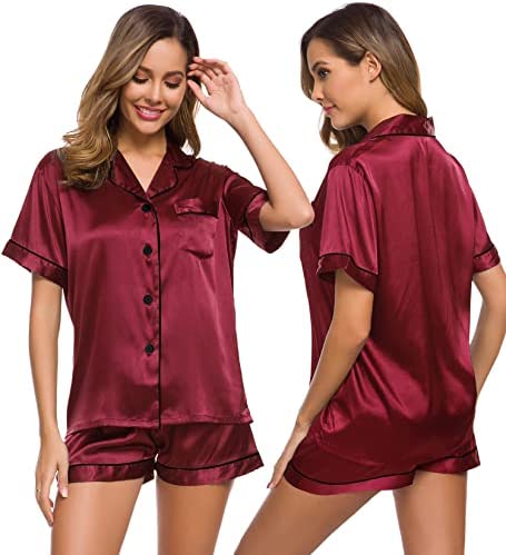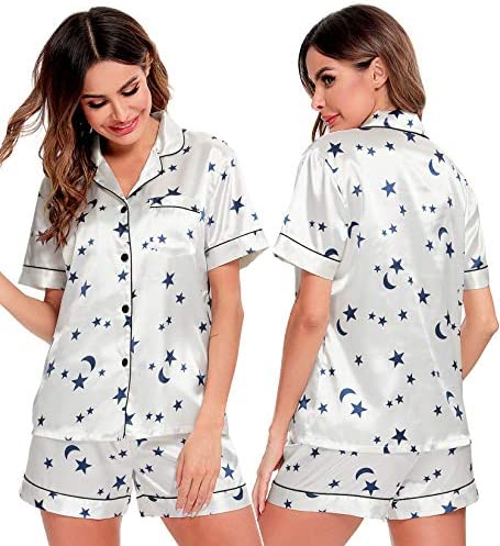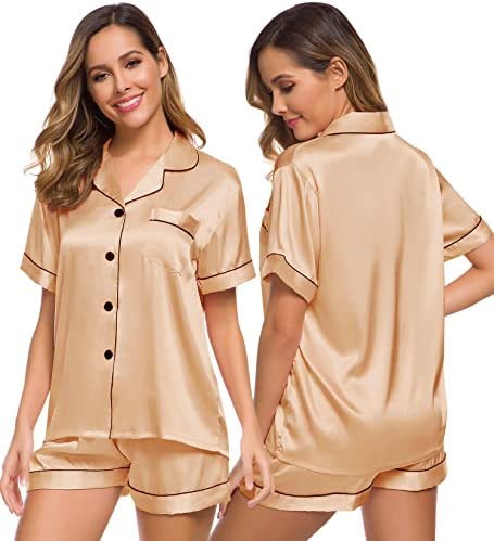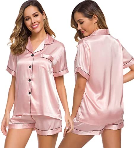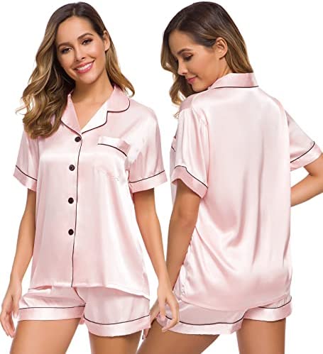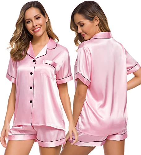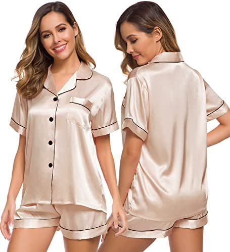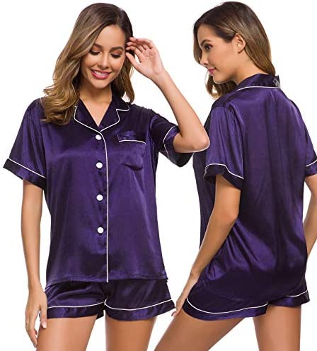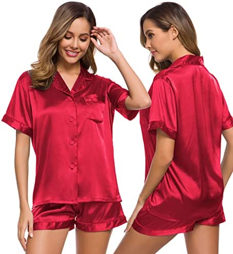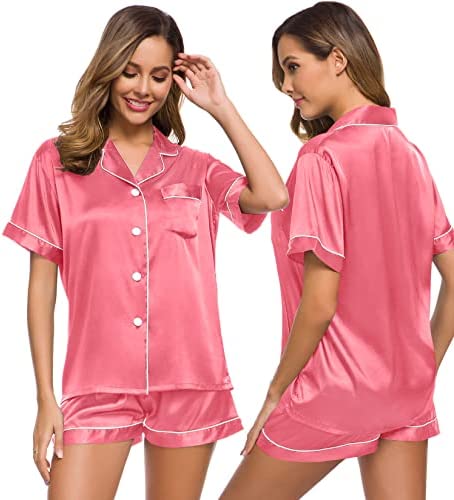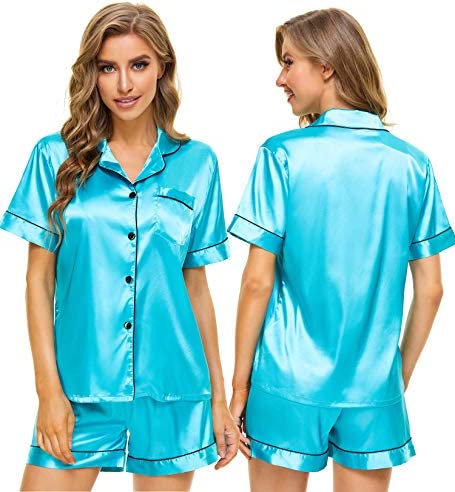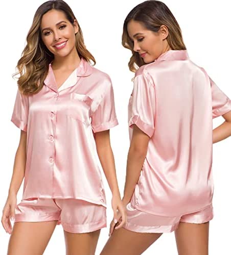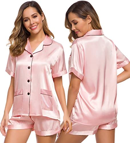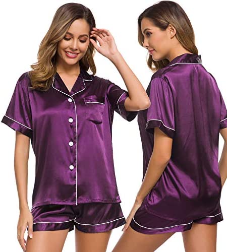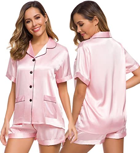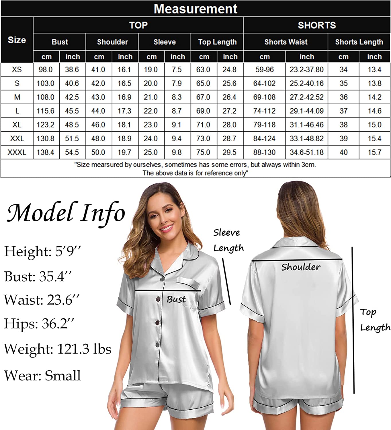 Occasion:Women's Short Sleeve Silk Satin Pajamas Set, which is suitable for daily wearing and easy to match.Comfortable and suitable for lounging and sleeping,pajama party,girls day,bridal sleepwear,indoor, living room, bedroom, hotel, vocation, travel, and daily sleepwear.