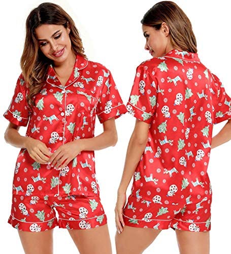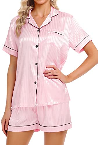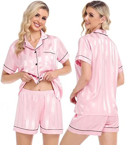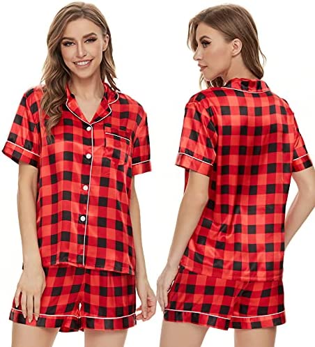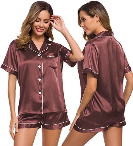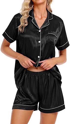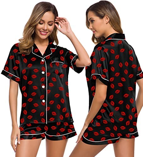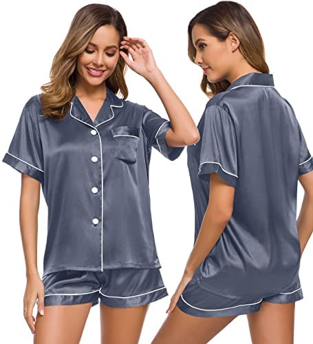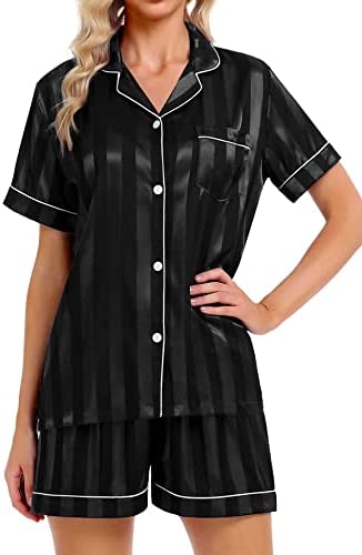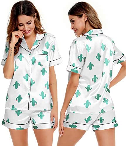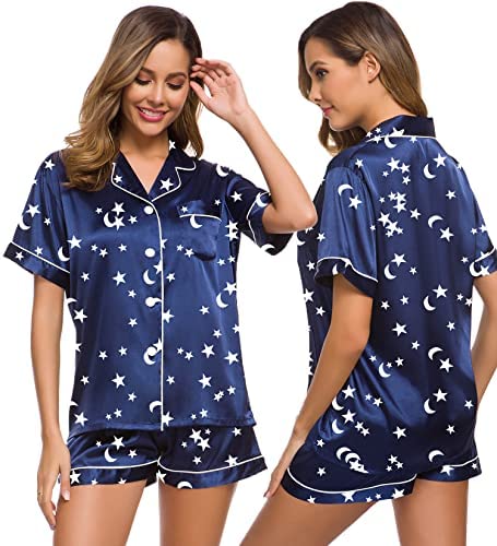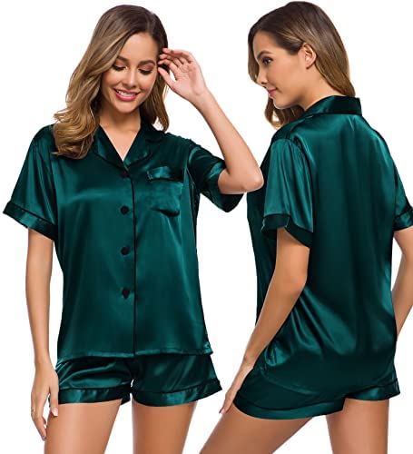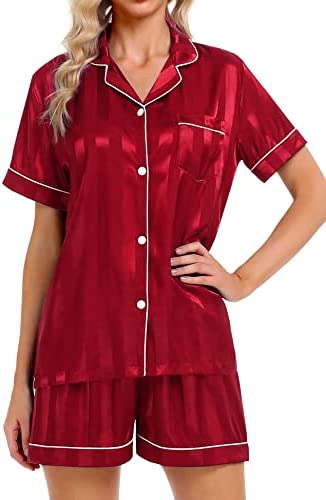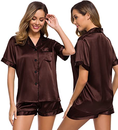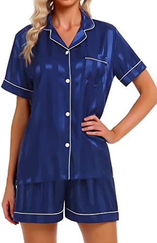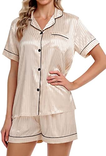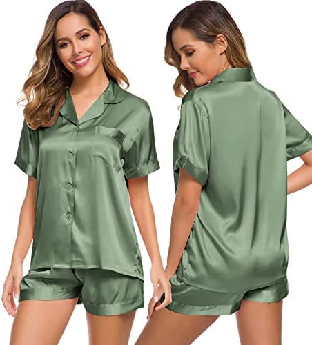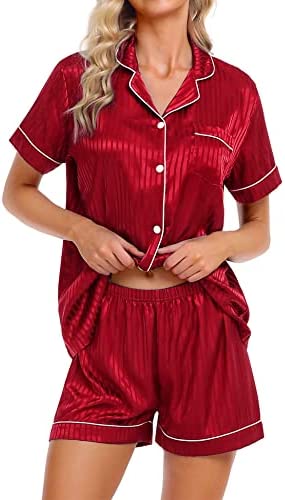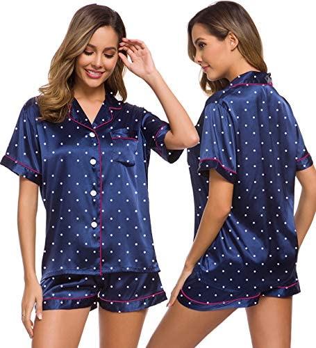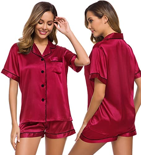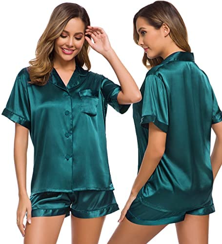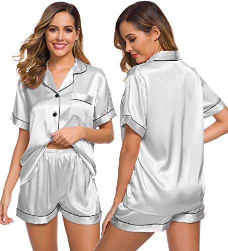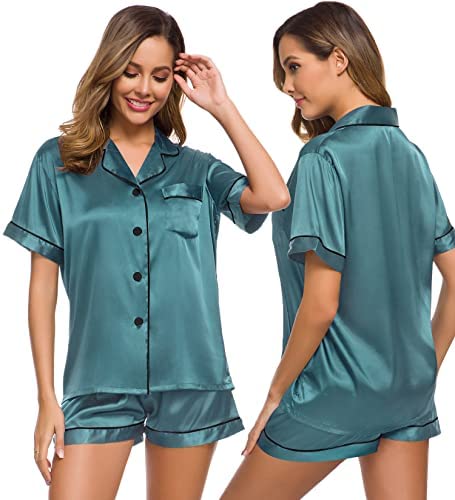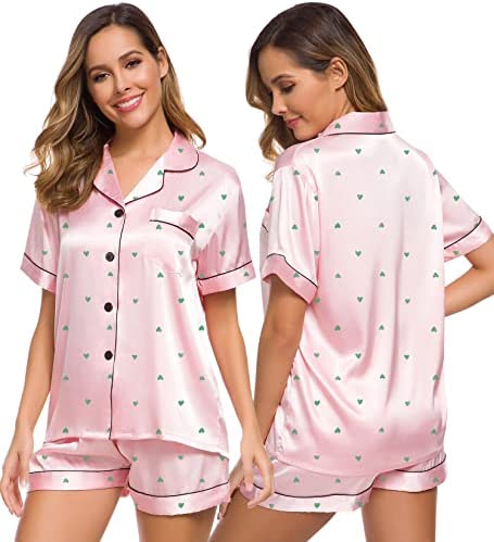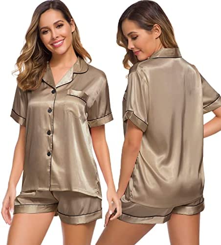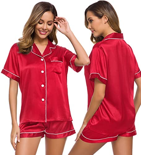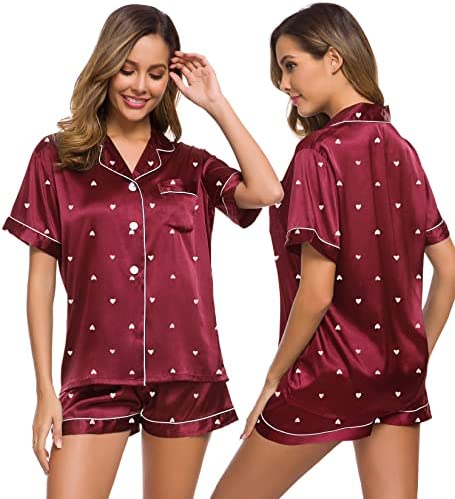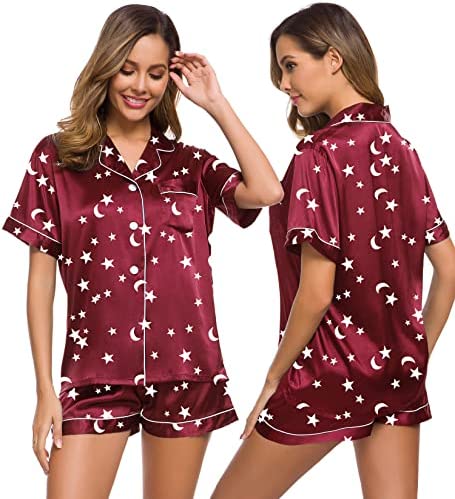 Occasion:Women's Short Sleeve Silk Satin Pajamas Set, which is suitable for daily wearing and easy to match.Comfortable and suitable for lounging and sleeping,pajama party,girls day,bridal sleepwear,indoor, living room, bedroom, hotel, vocation, travel, and daily sleepwear.