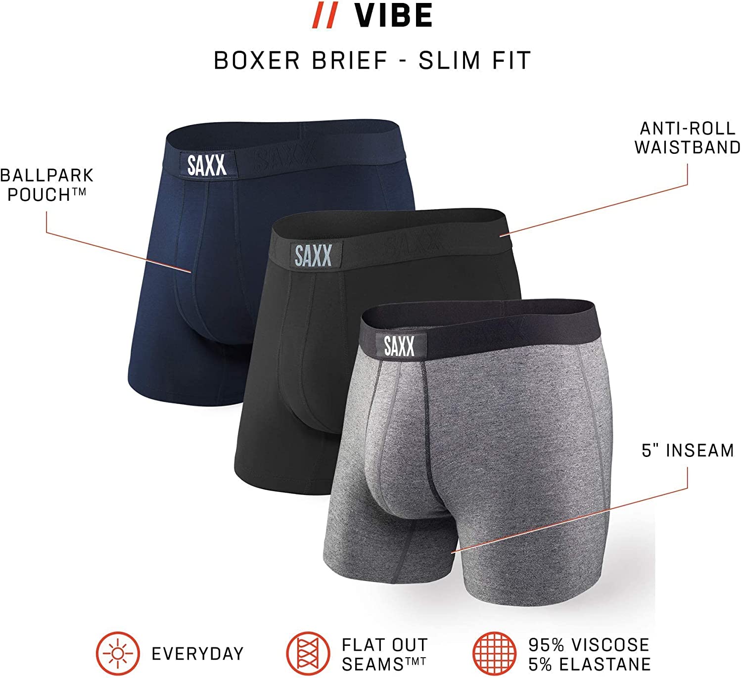 SAXX Men's Underwear - Vibe Super Soft Boxer Briefs with Built-in Pouch Support - Underwear for Men, Pack of 3