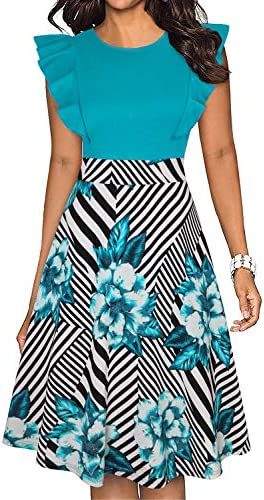 HUGS YOUR CURVES FITS PERFECTLY : This women's swing a-line party casual dress very cute well cut and hugs your curves perfectly. It's flowing very pretty and accentuates your figure.This women's fit and flare summer dresses have a elegant feminine look!